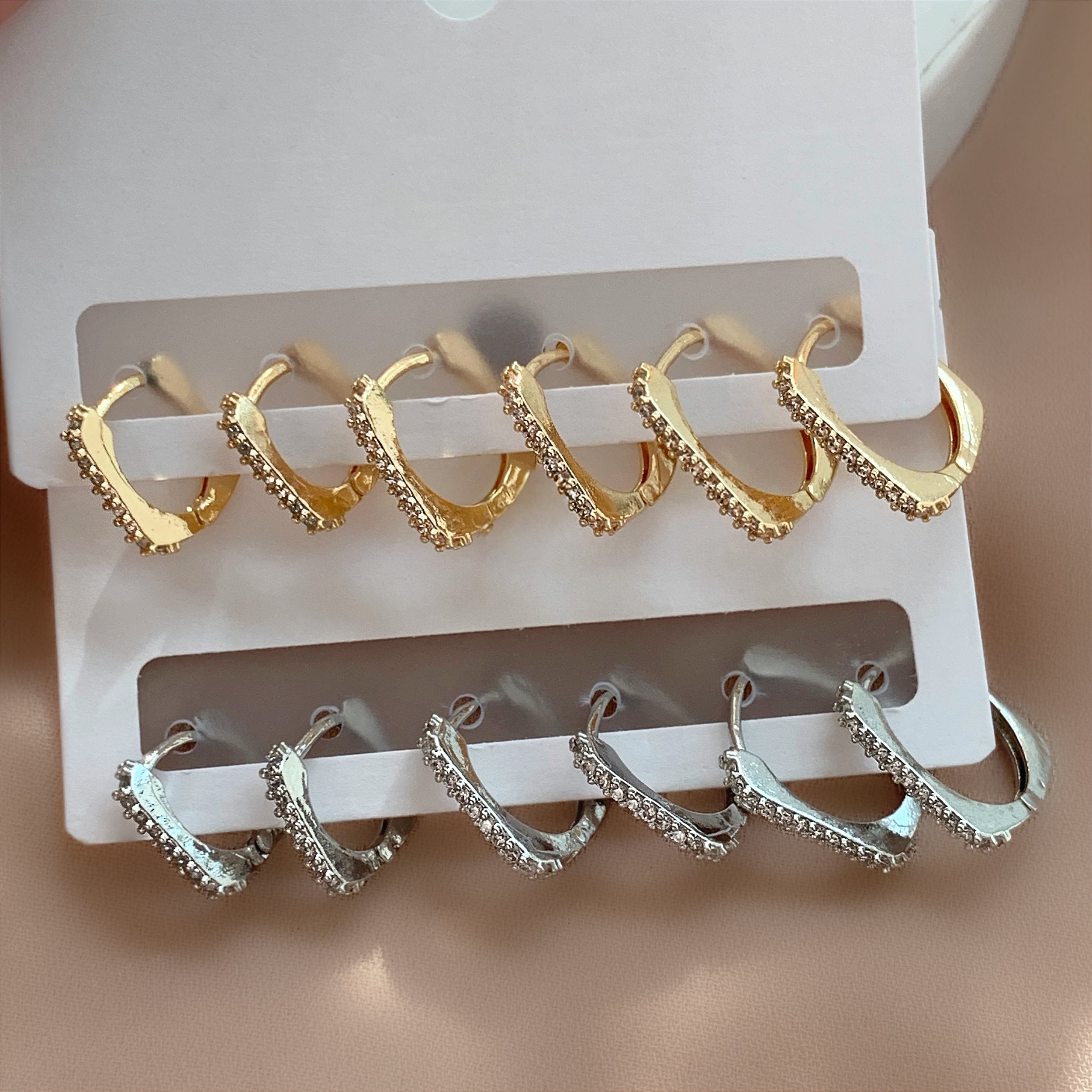 BRINCO KIT ARGOLINHAS QUADRADAS BORDA BOLEADA ZIRCÔNIAS BIJU