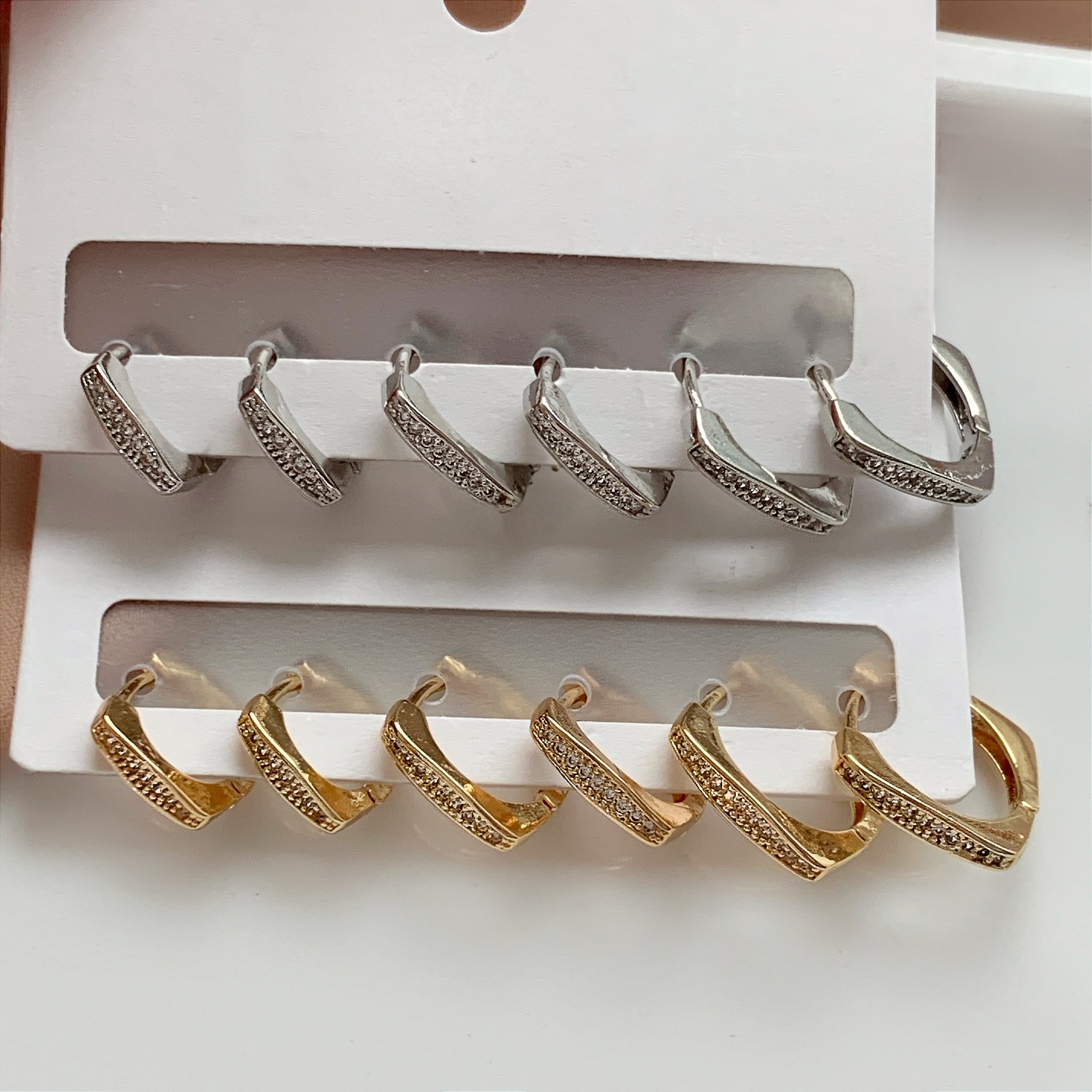 BRINCO KIT ARGOLINHAS QUADRADAS CRAVEJADAS EM ZIRCÔNIAS BIJU