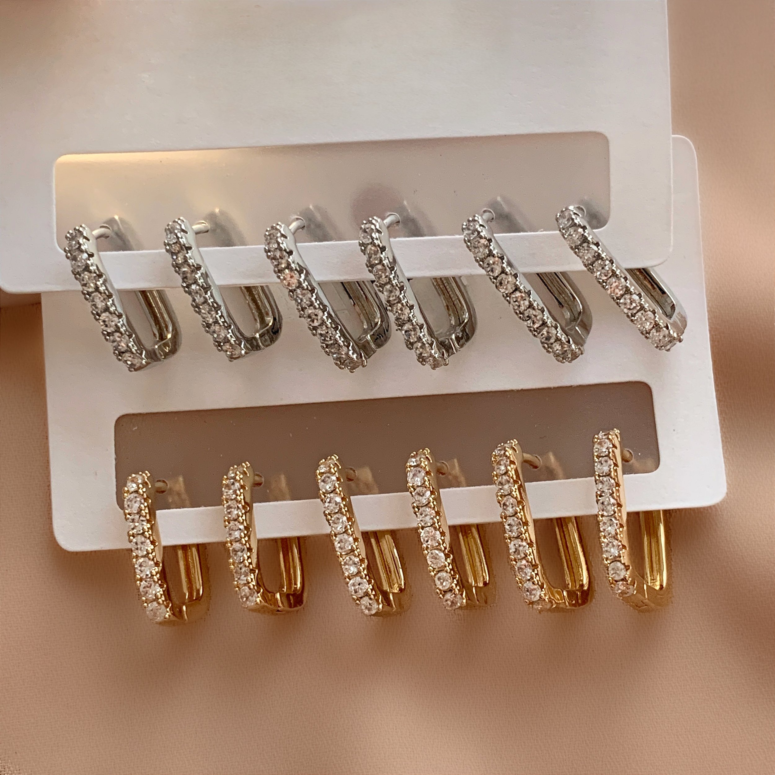BRINCO KIT ARGOLINHAS RETANGULARES ZIRCÔNIAS LUCIANA BIJU