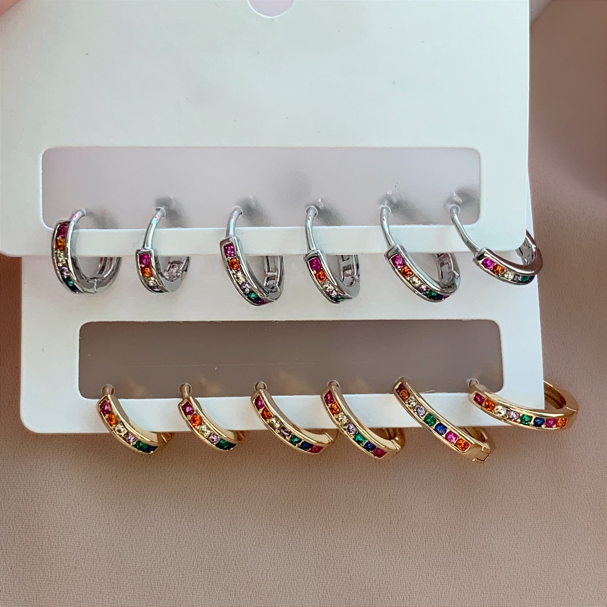 BRINCO KIT ARGOLINHAS ZIRCÔNIAS COLORIDAS LÍVIA BIJU