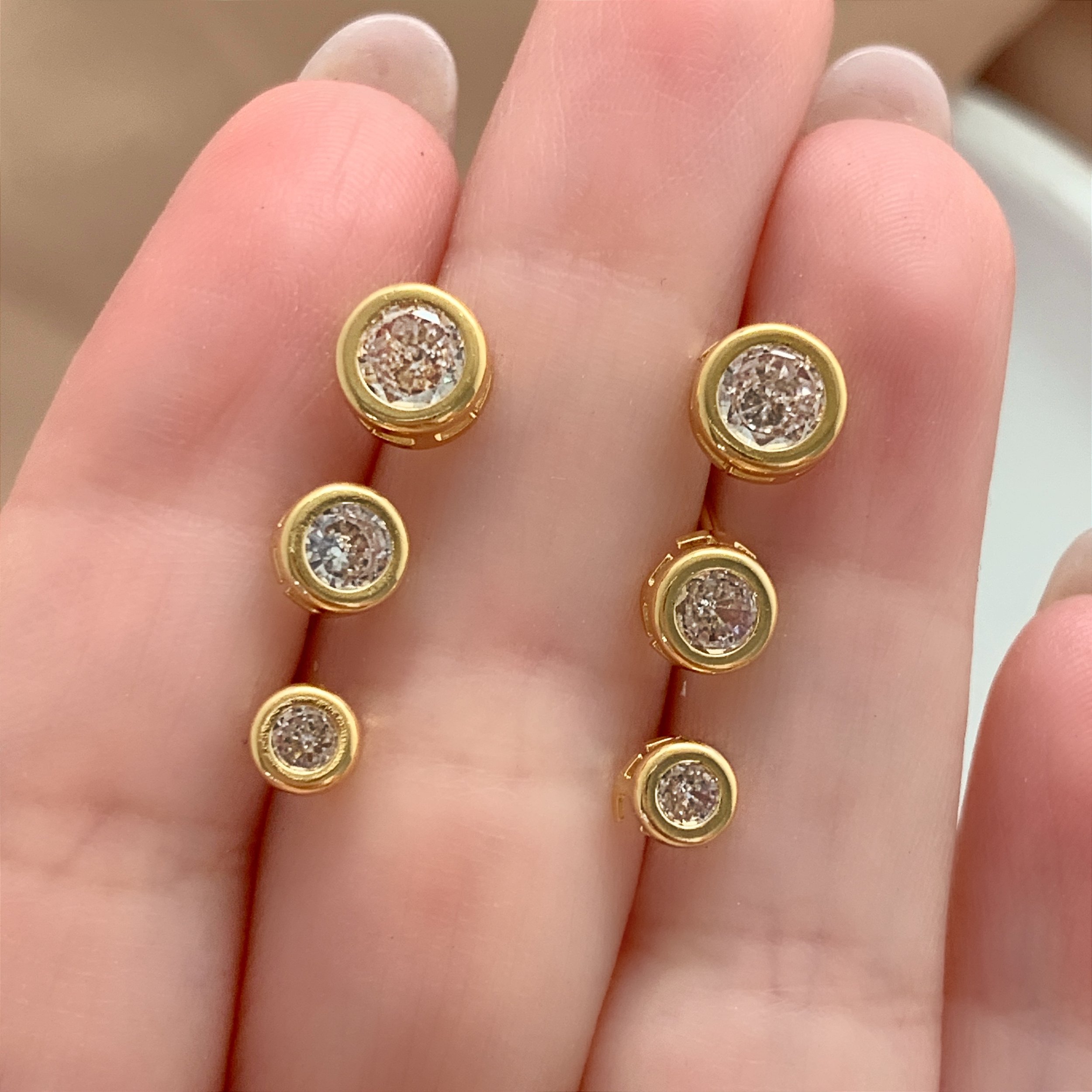 BRINCO KIT BOLINHAS ZIRCÔNIAS FOLHEADO A OURO 18K⭐