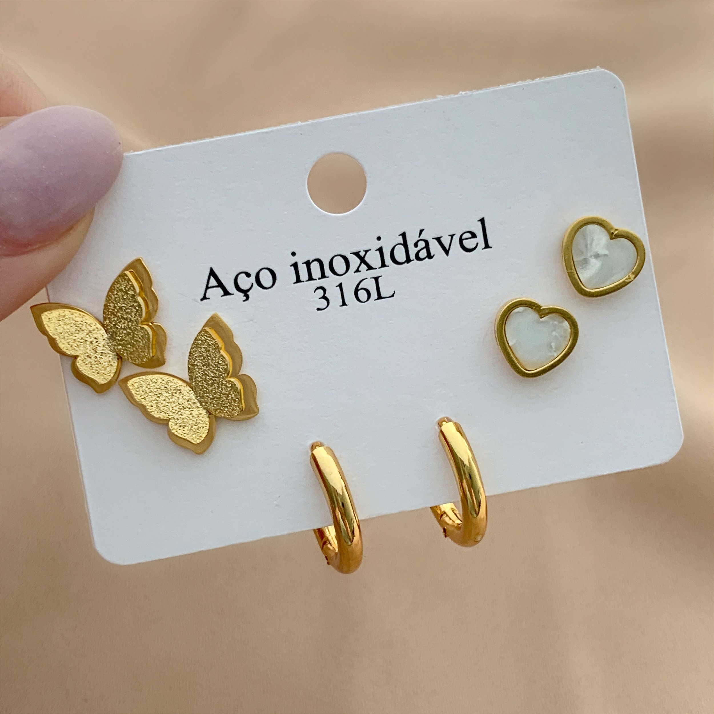 BRINCO KIT BORBOLETA E CORAÇÃO DOURADO AÇO 316L⭐️