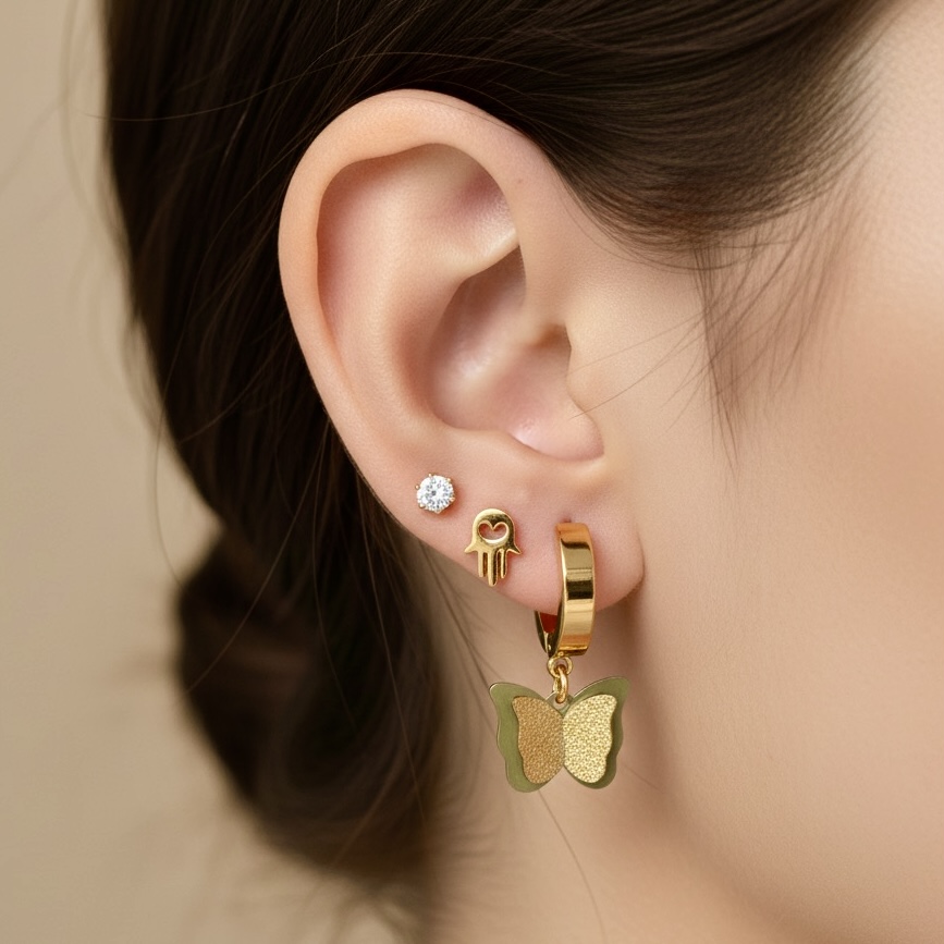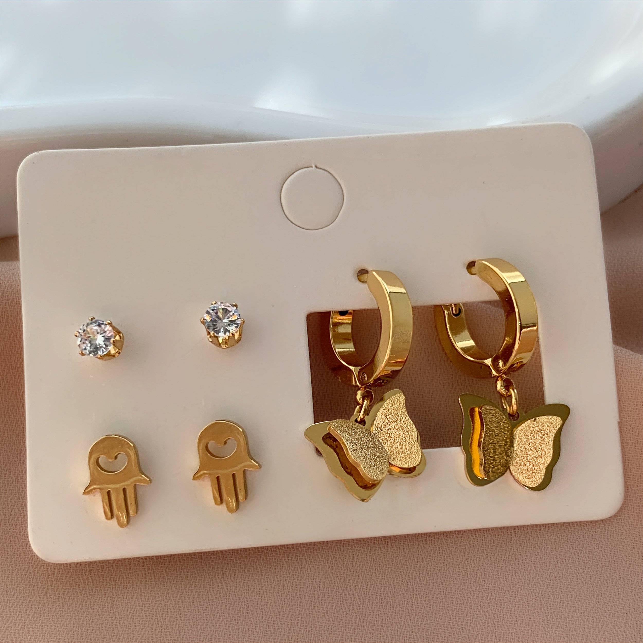 BRINCO KIT BORBOLETA, MÃO DE FÁTIMA E ZIRCÔNIA AÇO 316L⭐️
