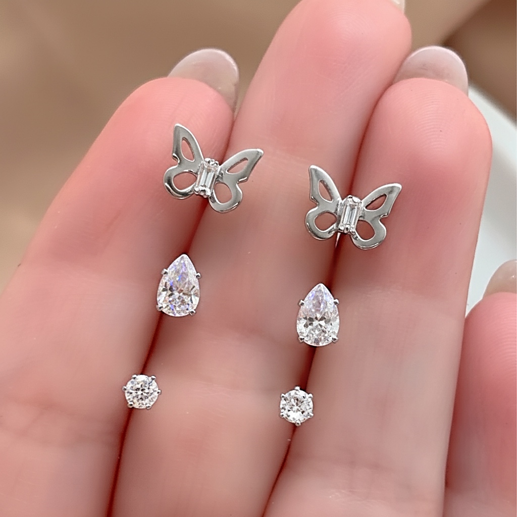 BRINCO KIT BORBOLETA VAZADA HIPOALERGÊNICO FOLHEADO A RÓDIO⭐️