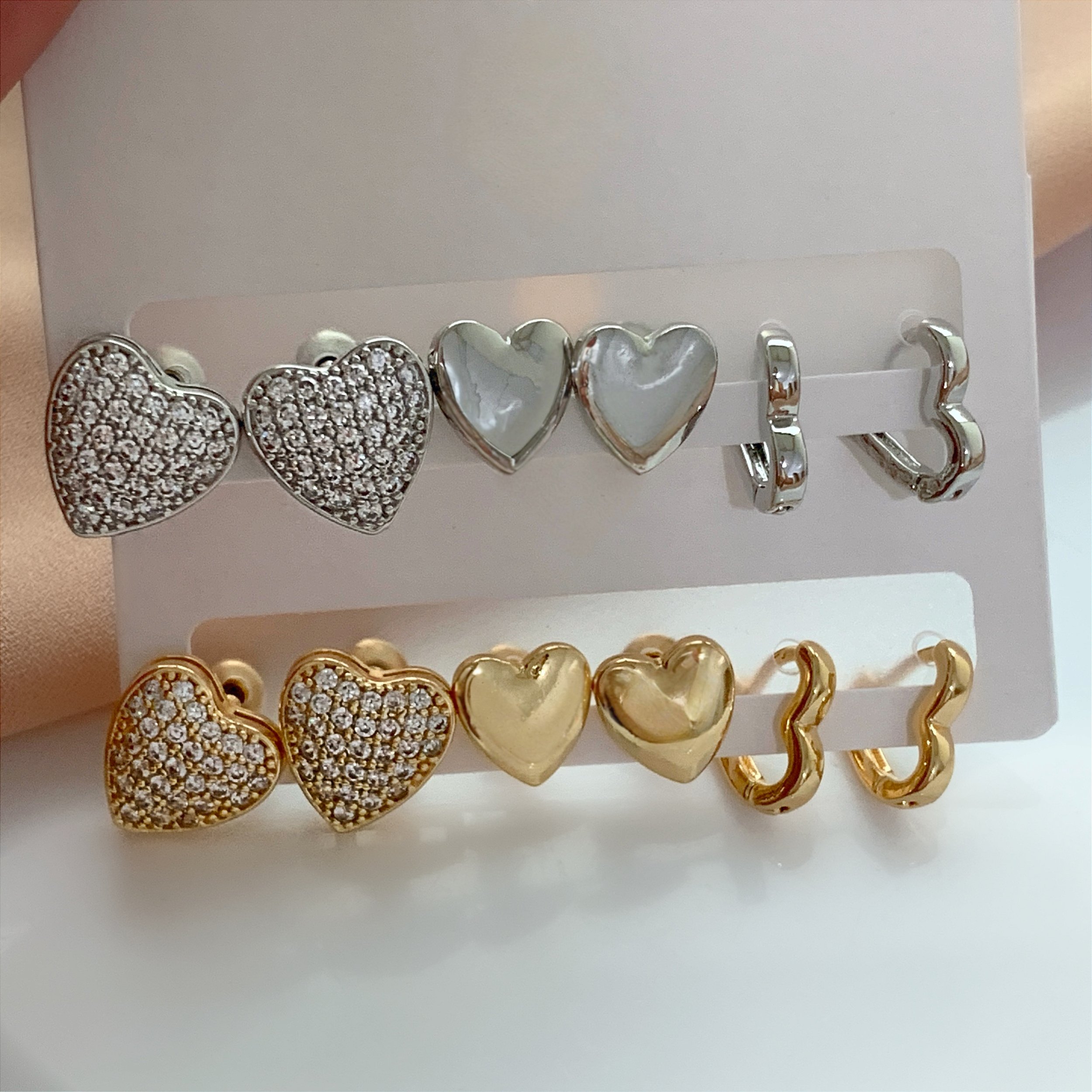 BRINCO KIT CORAÇÕES LISOS E ZIRCÔNIAS LÍVIA BIJU