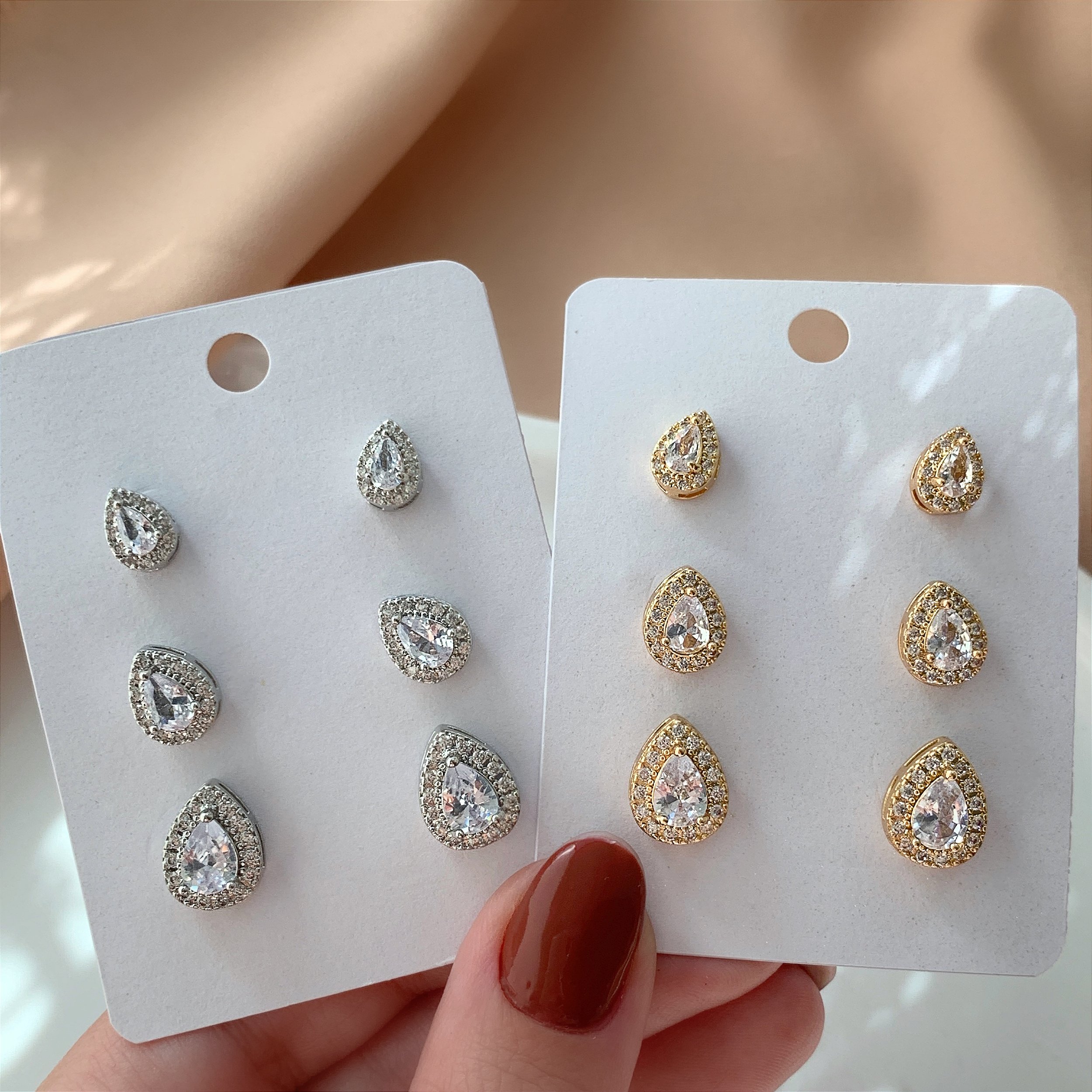 BRINCO KIT GOTAS CRAVEJADAS EM ZIRCÔNIAS BIJU