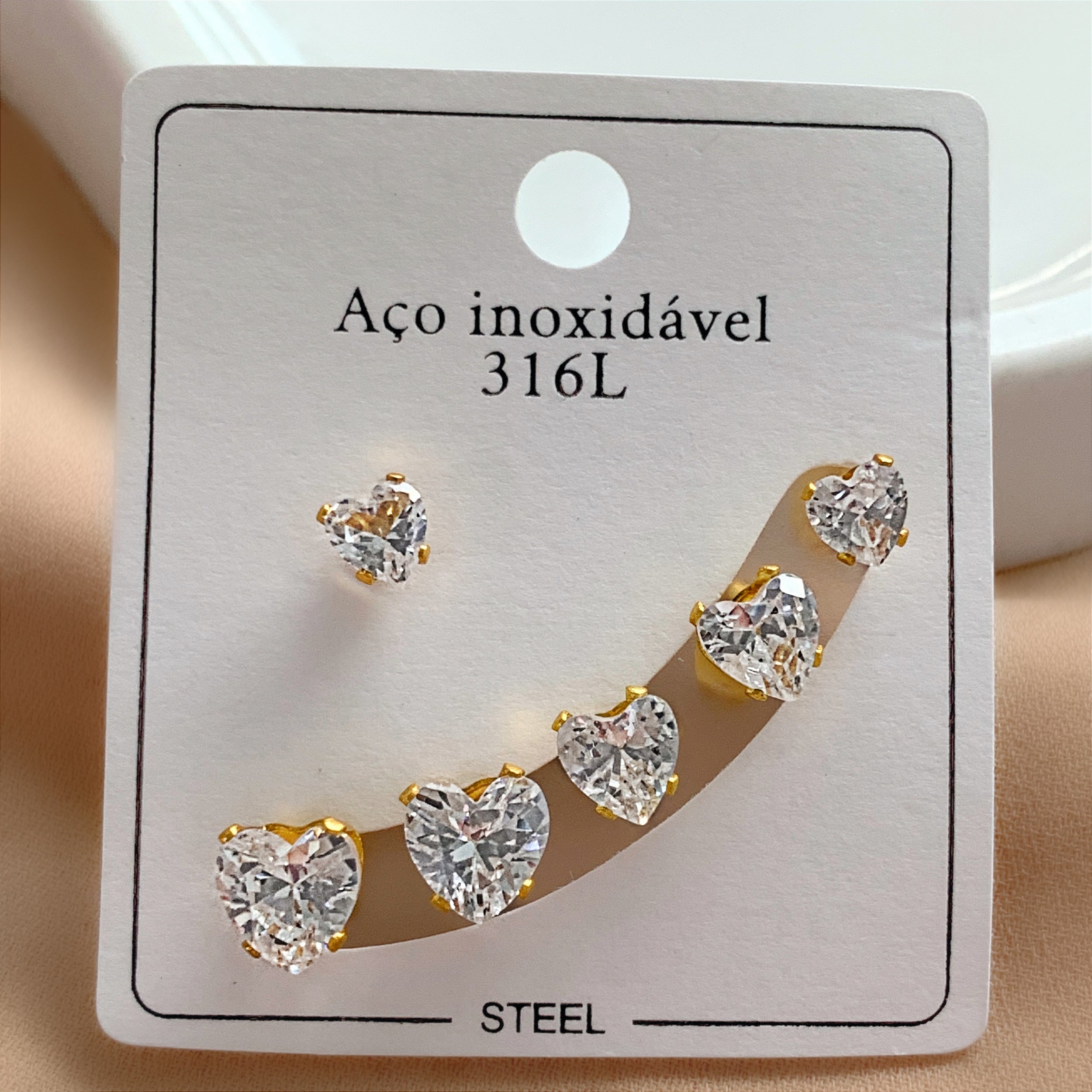 BRINCO KIT PONTOS DE LUZ ZIRCÔNIAS CORAÇÕES DOURADO AÇO 316L⭐️