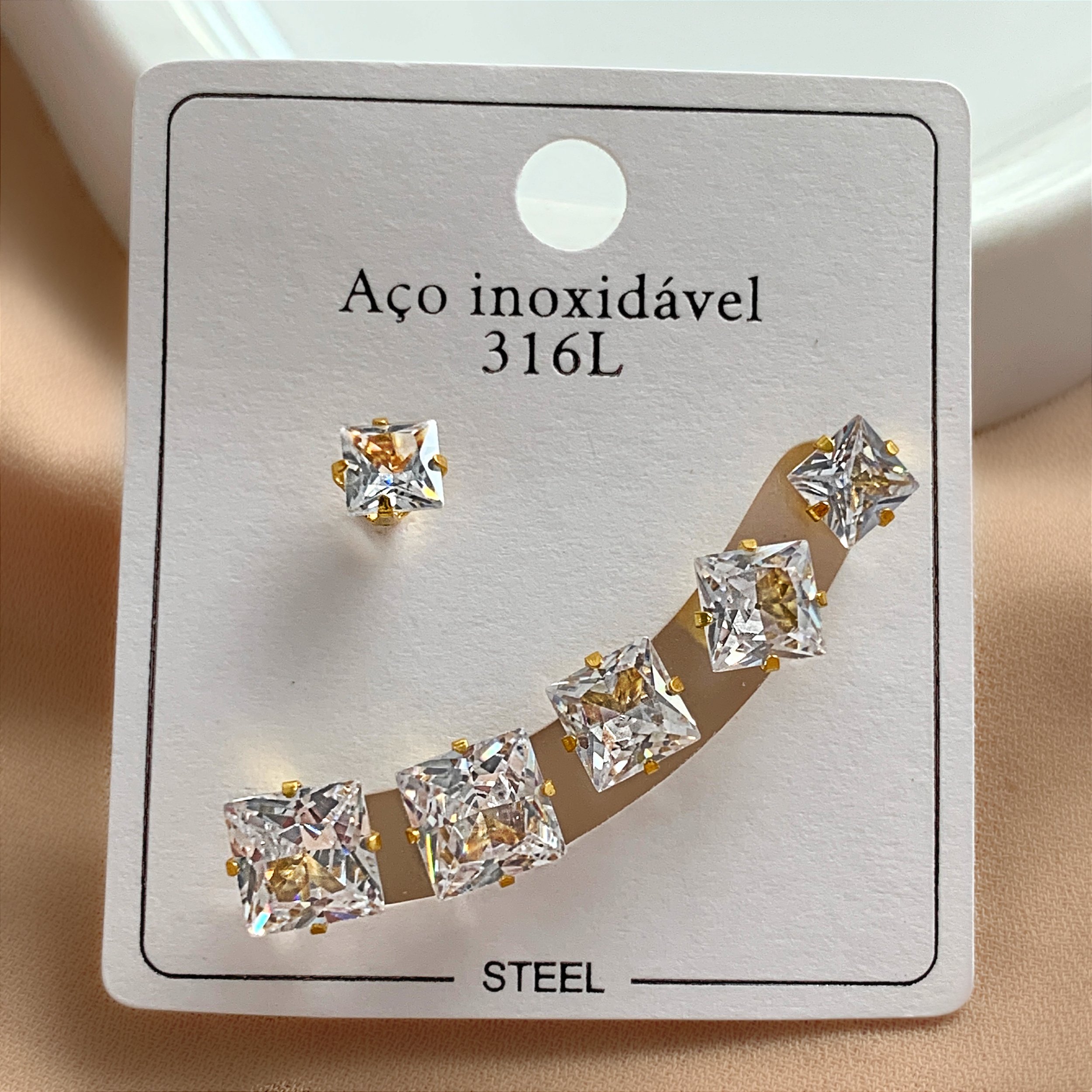 BRINCO KIT PONTOS DE LUZ ZIRCÔNIAS QUADRADAS DOURADO AÇO 316L⭐️