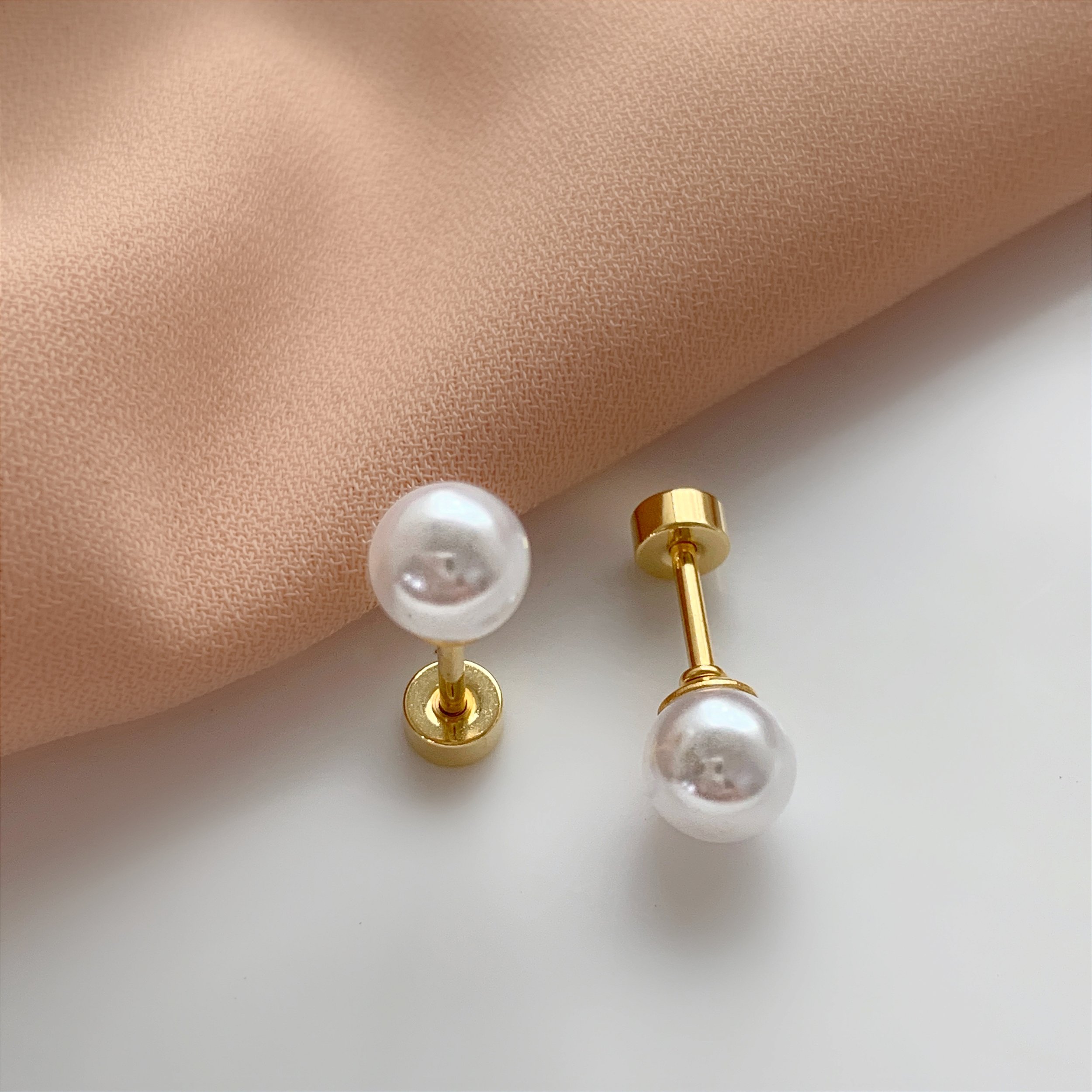 BRINCO PÉROLA TARRAXA ROSCA DOURADO AÇO 316L⭐️