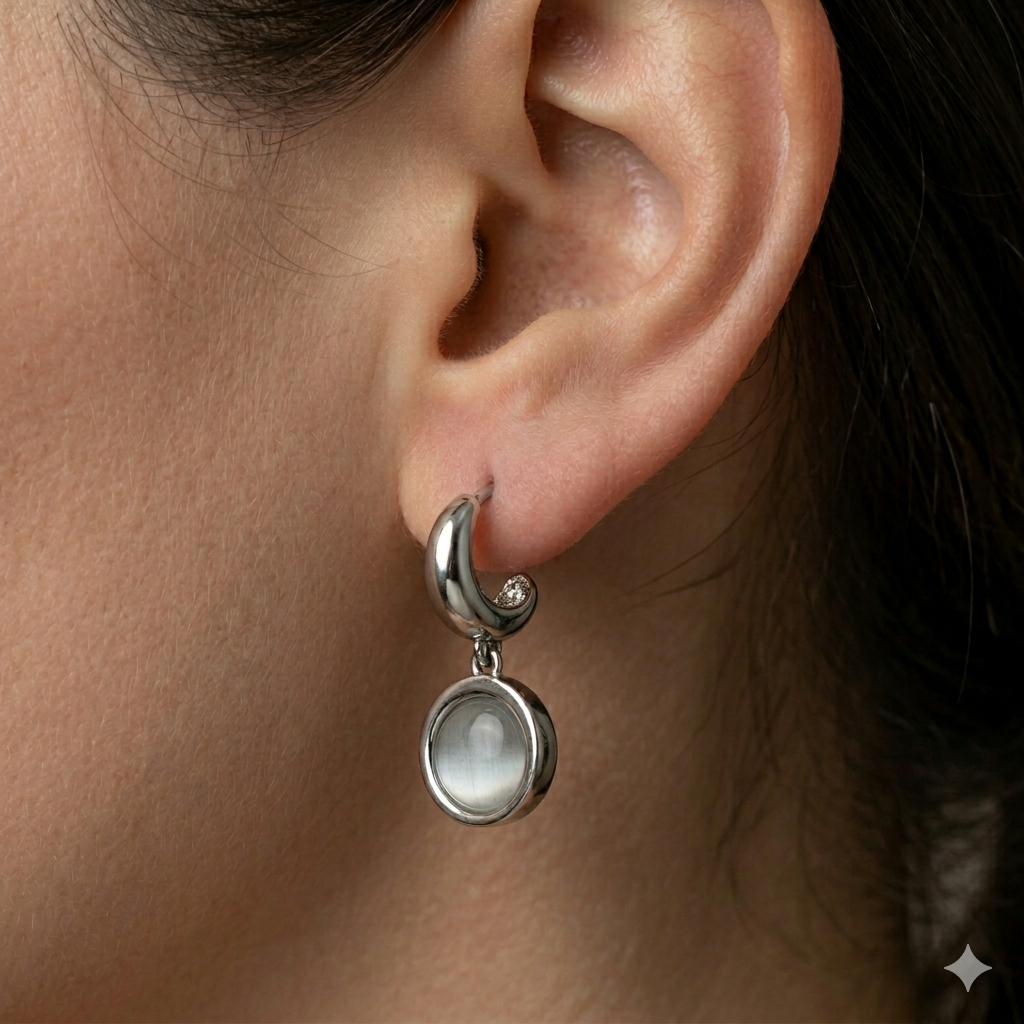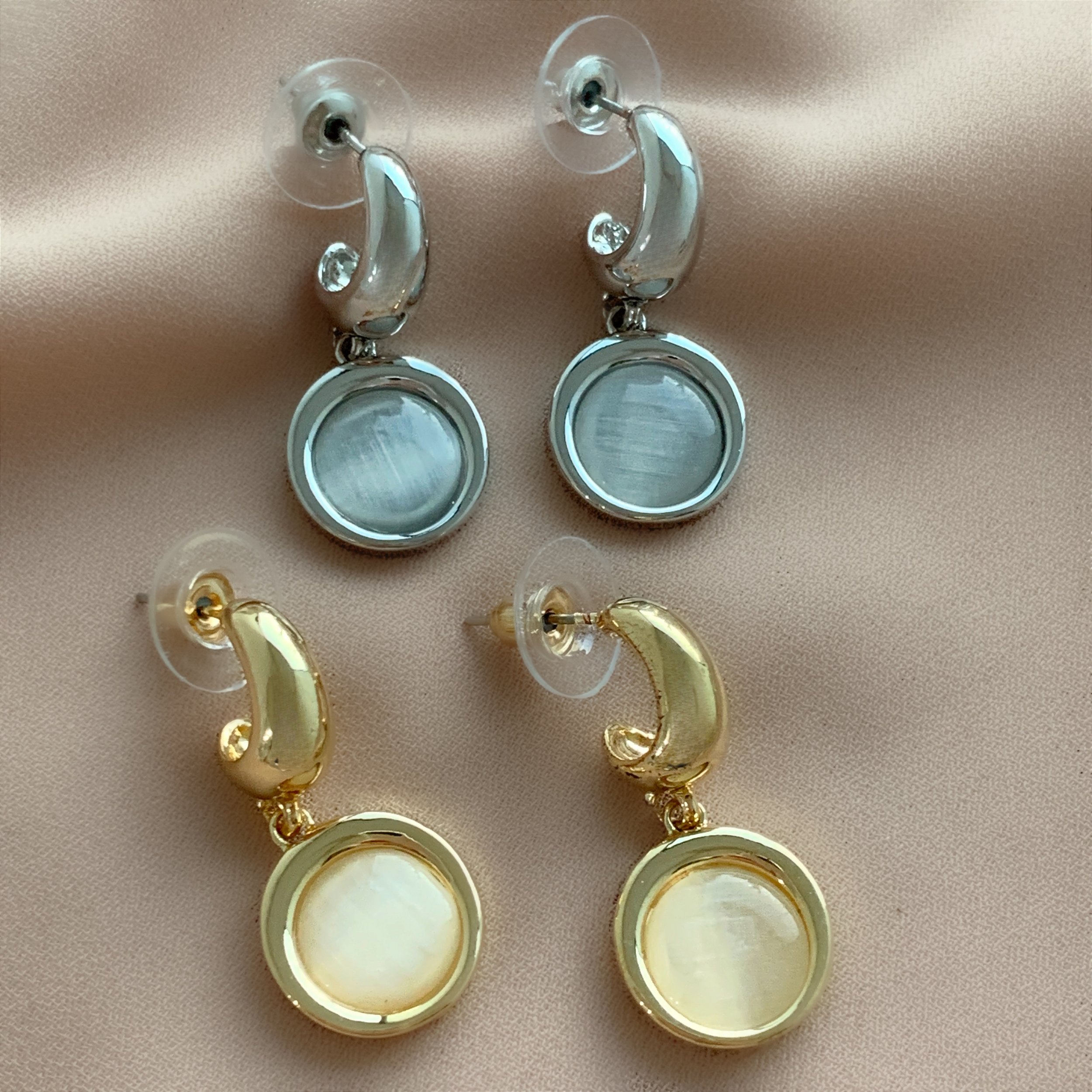 BRINCO PINGENTE BOLINHA PEDRA OLHO DE GATO BIJU