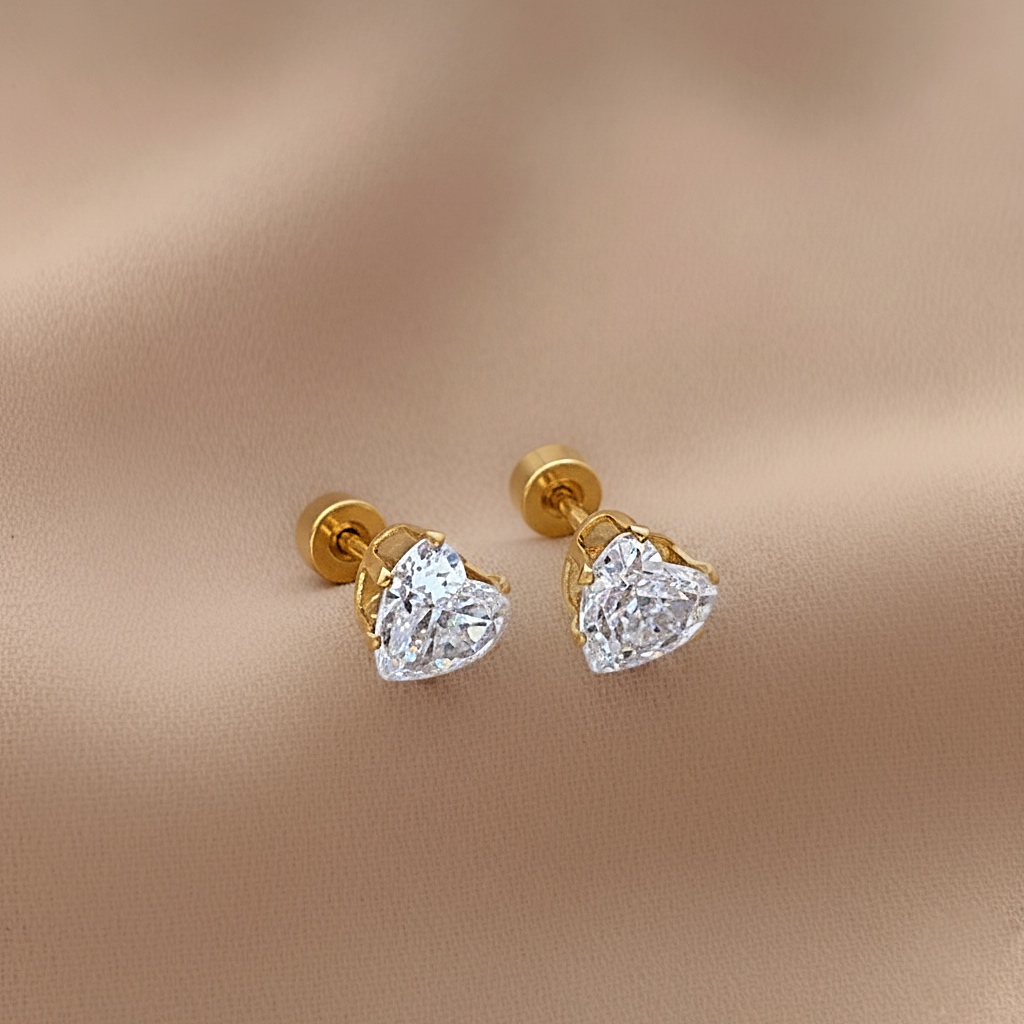 BRINCO PONTO DE LUZ CORAÇÃO ZIRCÔNIA TARRAXA ROSCA DOURADO AÇO 316L⭐️