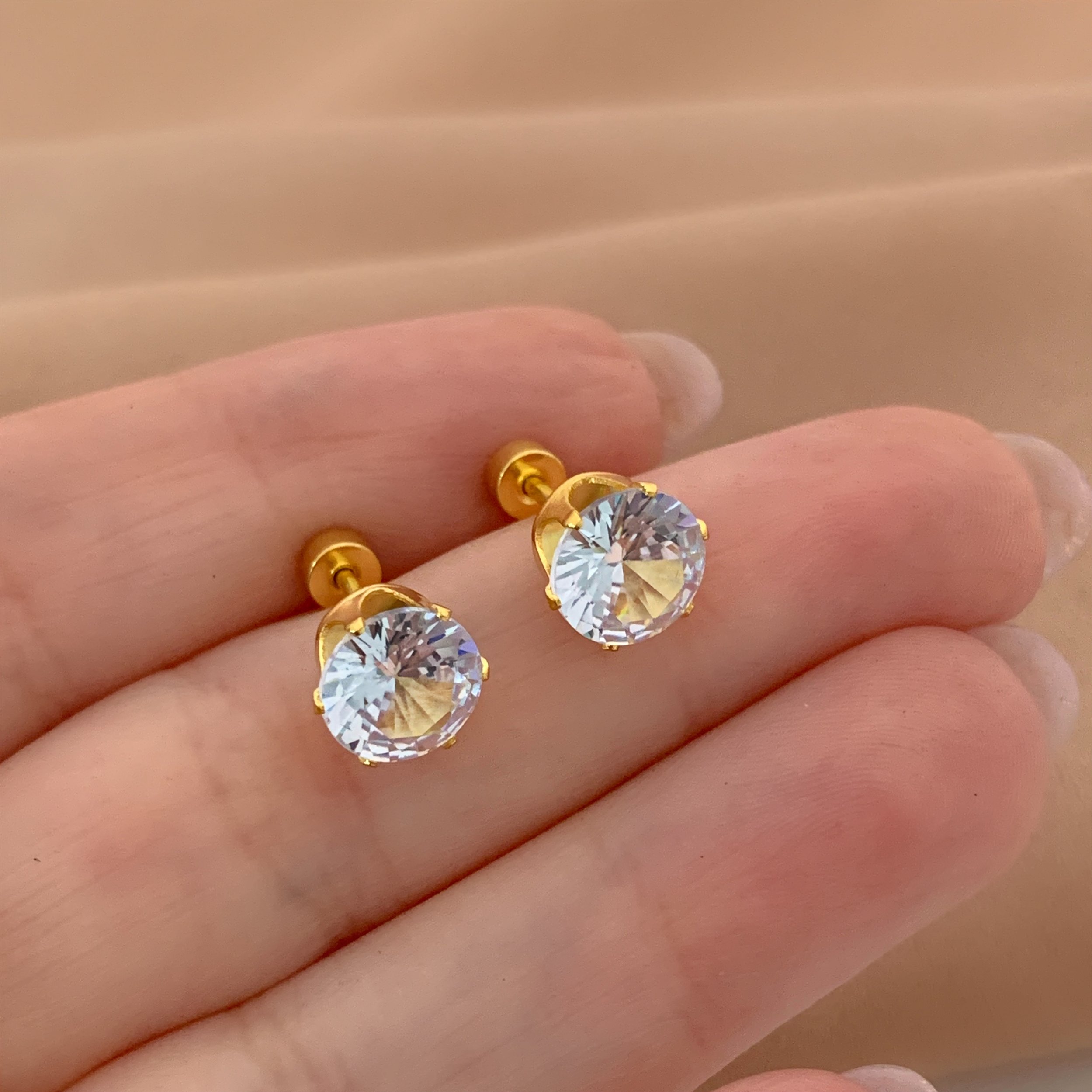 BRINCO PONTO DE LUZ ZIRCÔNIA M TARRAXA ROSCA DOURADO AÇO 316L⭐️