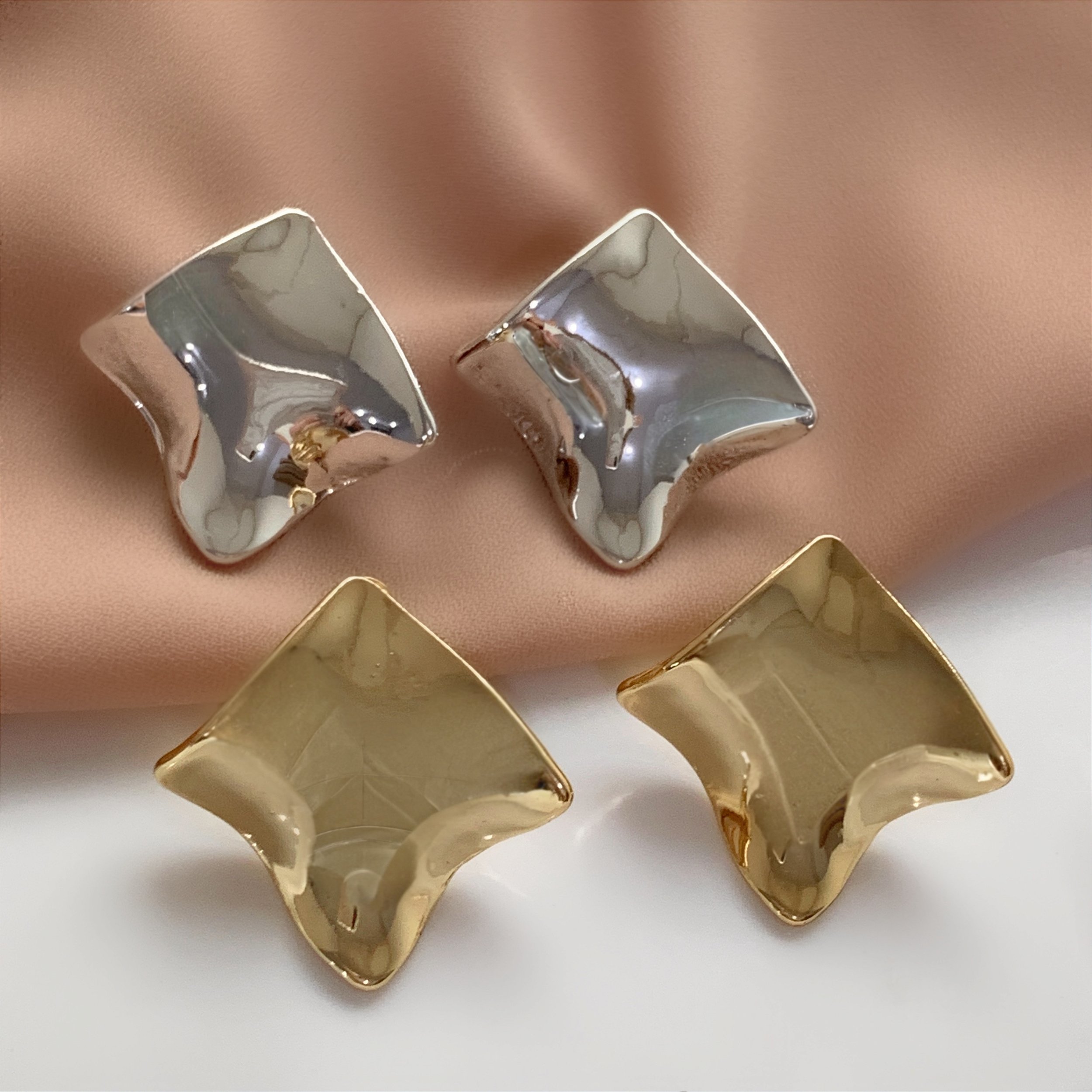 BRINCO QUADRADO LISO ONDULADO BIJU