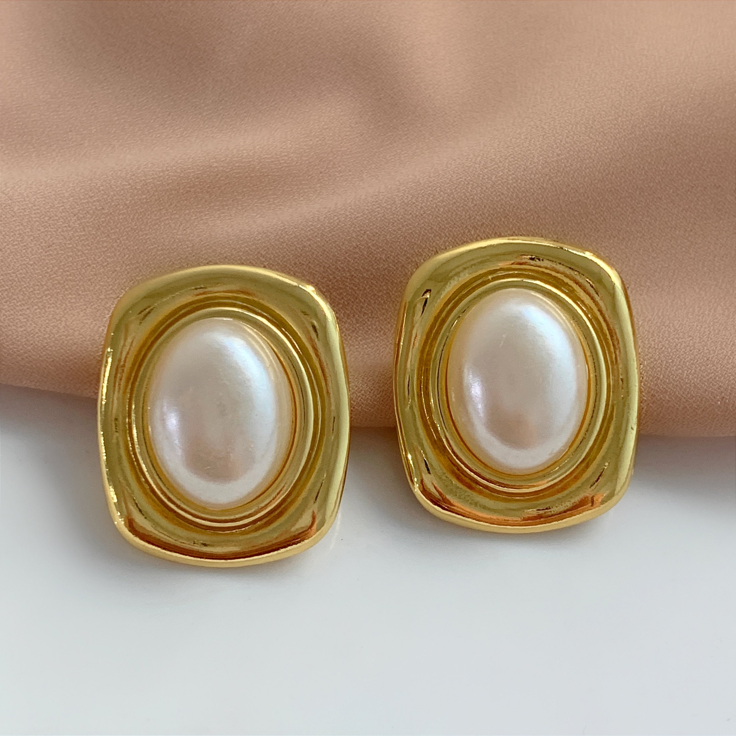 BRINCO RETANGULAR COM PÉROLA DOURADO AÇO 316L ⭐️