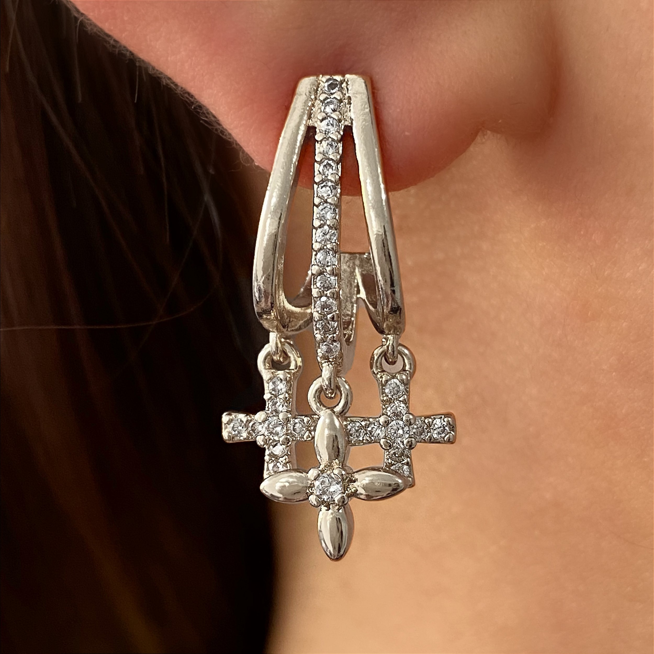 BRINCO TRÊS FIOS LISOS E ZIRCÔNIAS COM PINGENTES BIJU