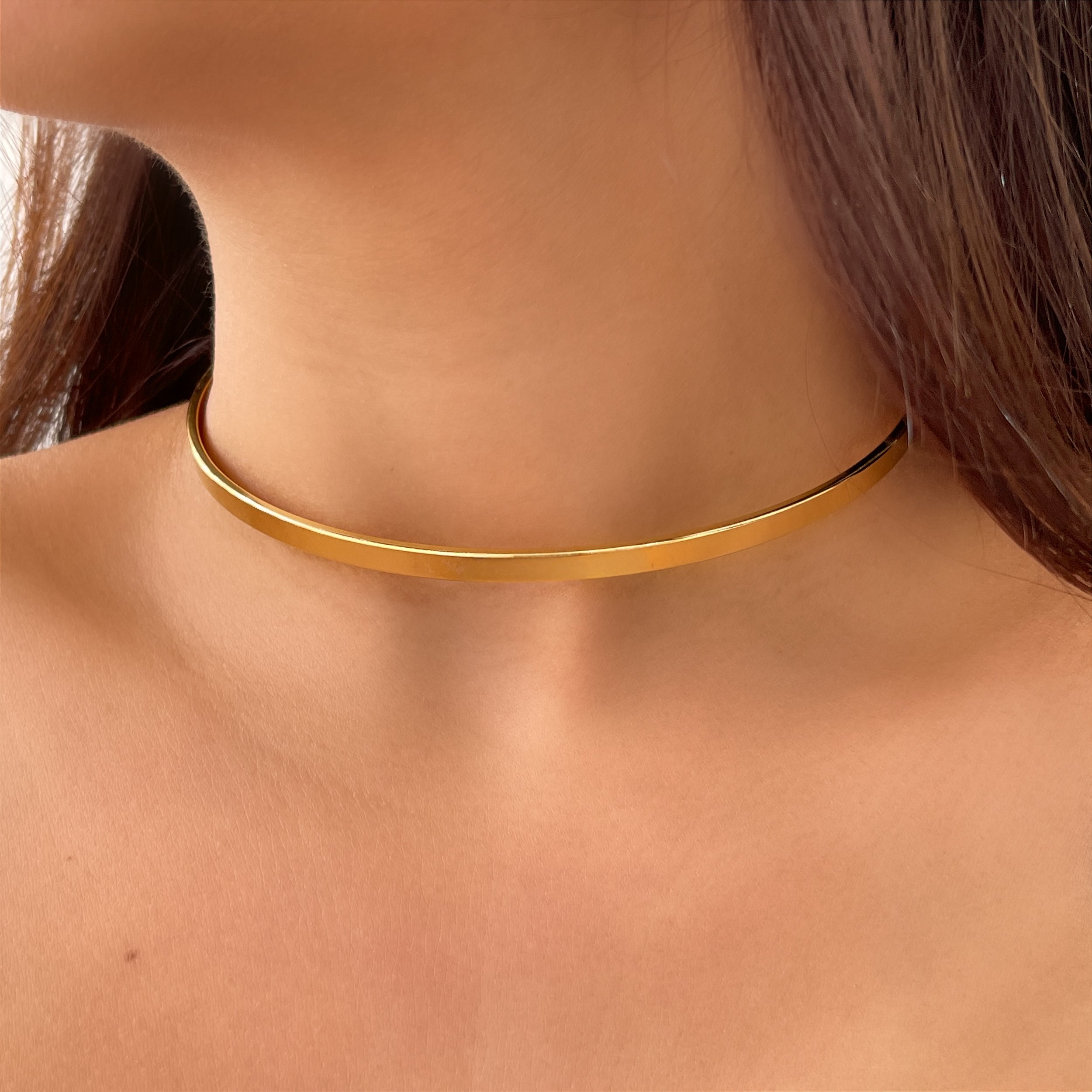 COLAR ARO FIO ACHATADO LISO FOLHEADO A OURO 18K⭐️
