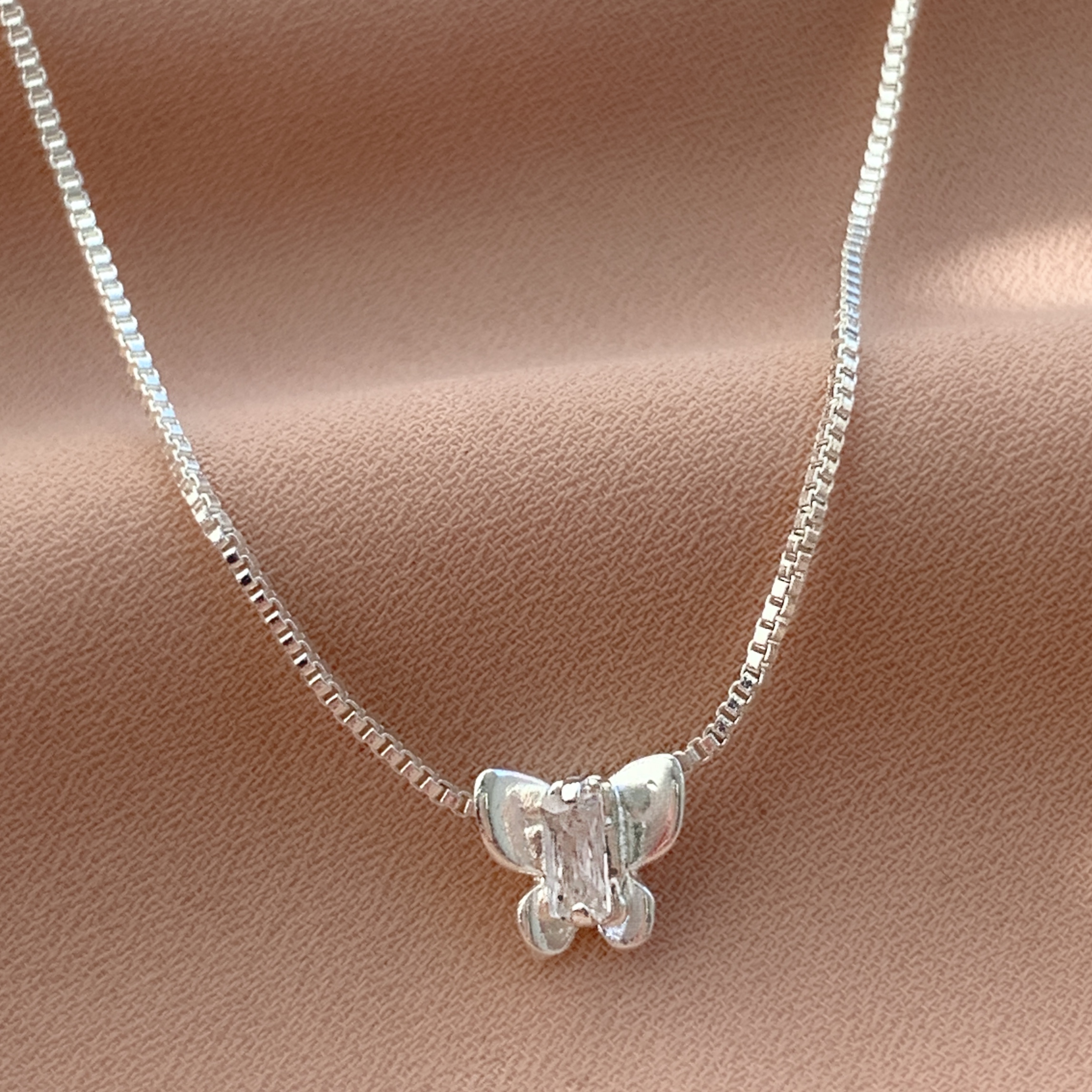 COLAR BORBOLETA MINI ZIRCÔNIA UNITÁRIA FOLHEADO A PRATA⭐️