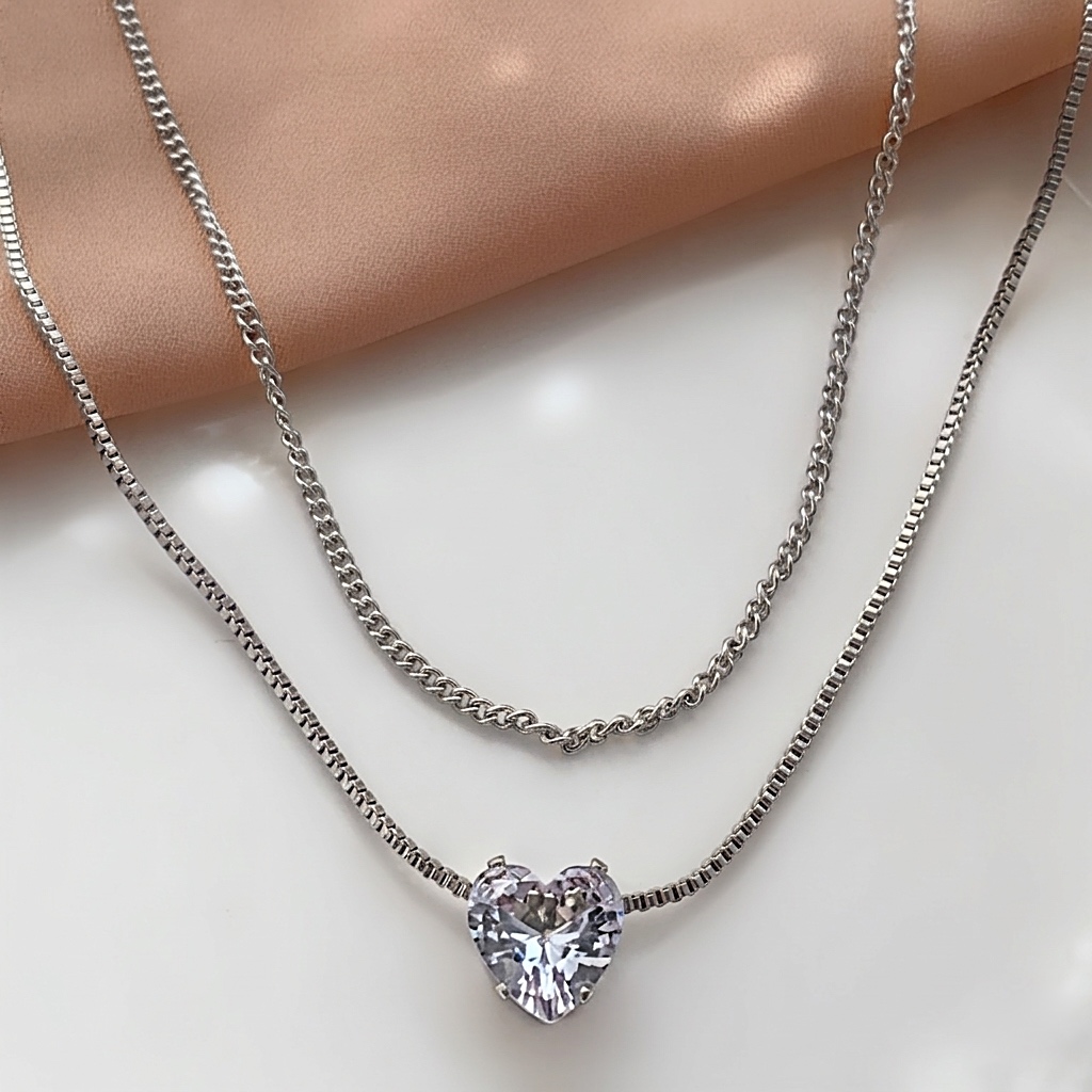 COLAR DUPLO CORAÇÃO PEDRA ZIRCÔNIA AÇO 316L⭐️