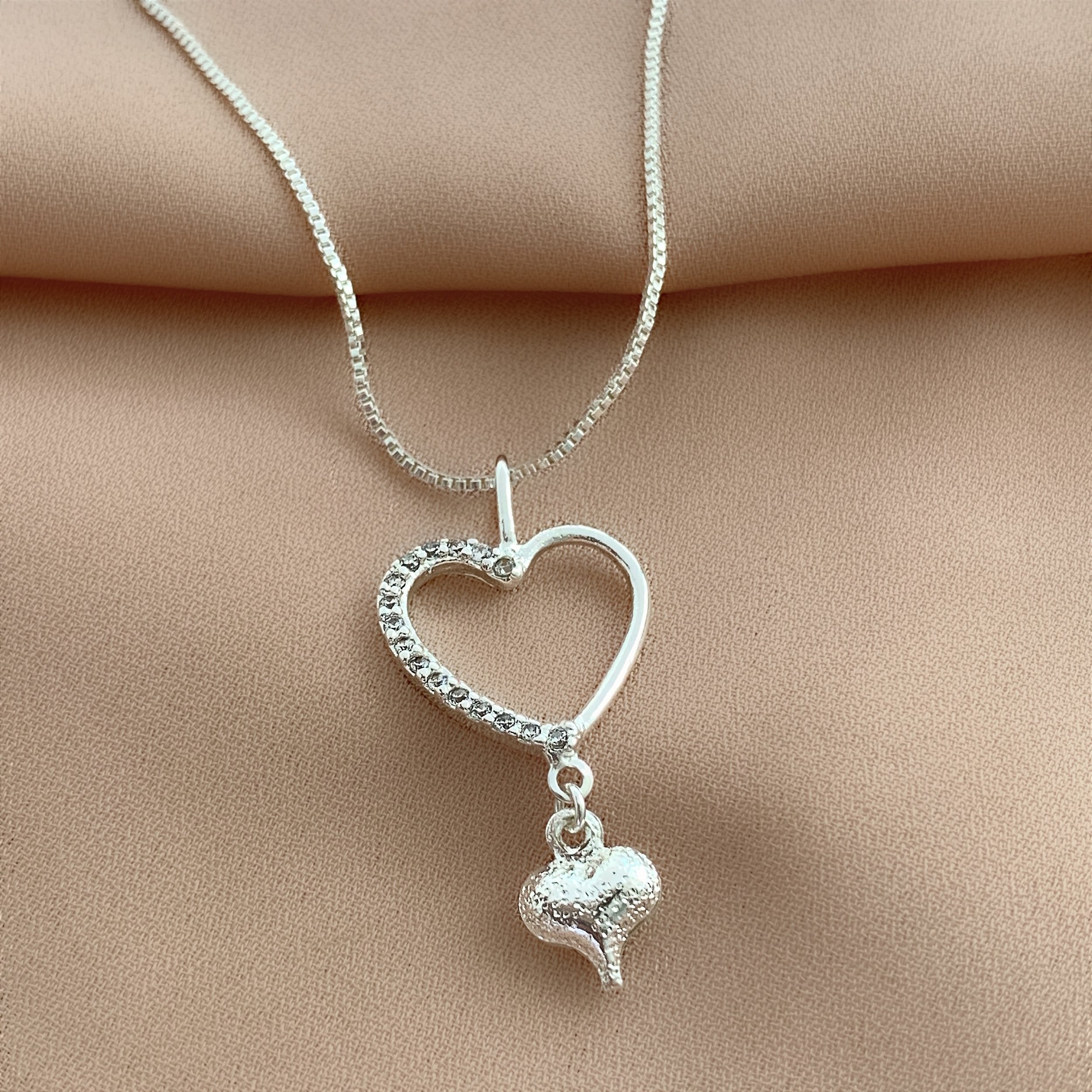 COLAR CORAÇÃO VAZADO METADE ZIRCÔNIAS E CORAÇÃO TEXTURIZADO FOLHEADO A PRATA⭐️