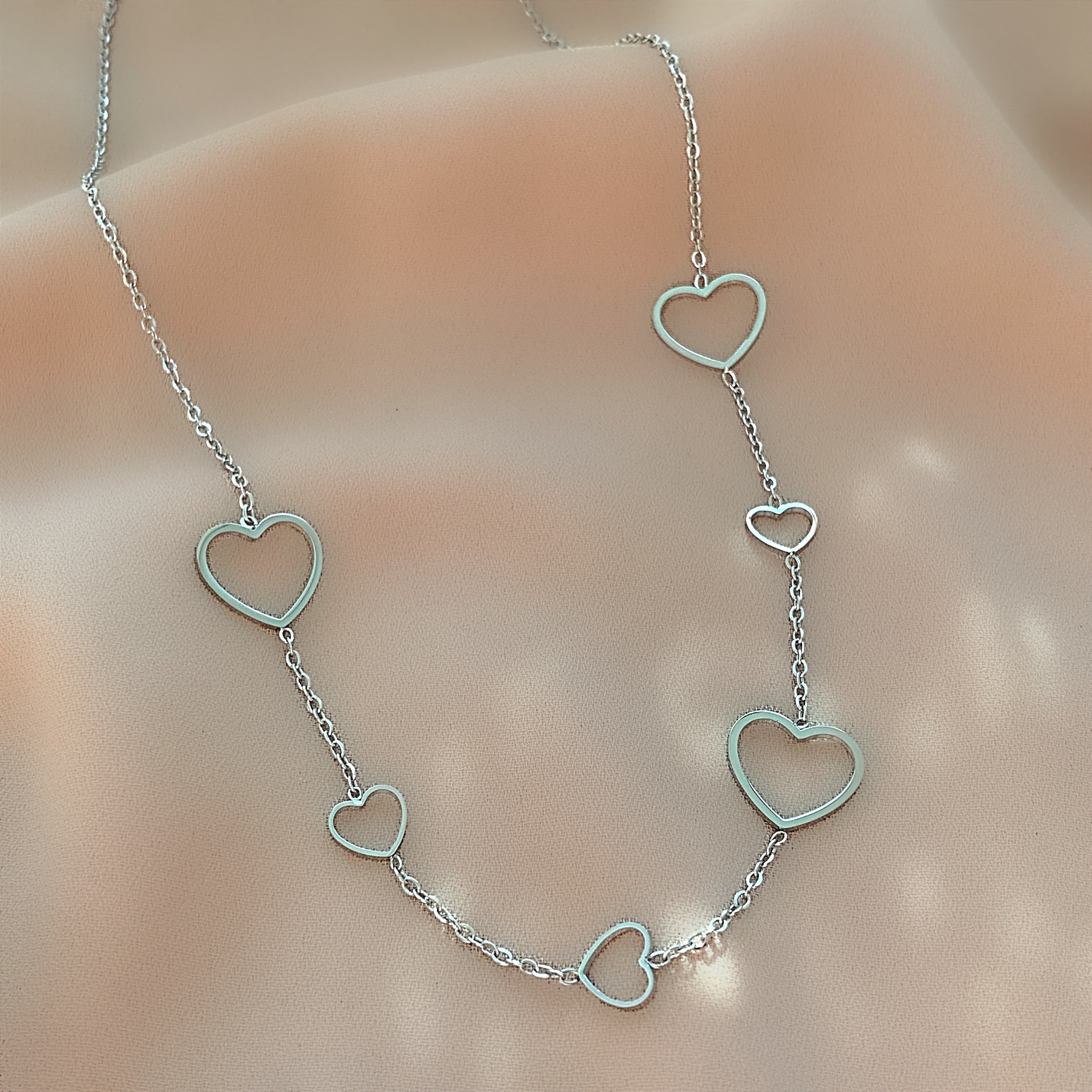COLAR CORAÇÕES FINOS DELICADOS VAZADOS AÇO 316L⭐️