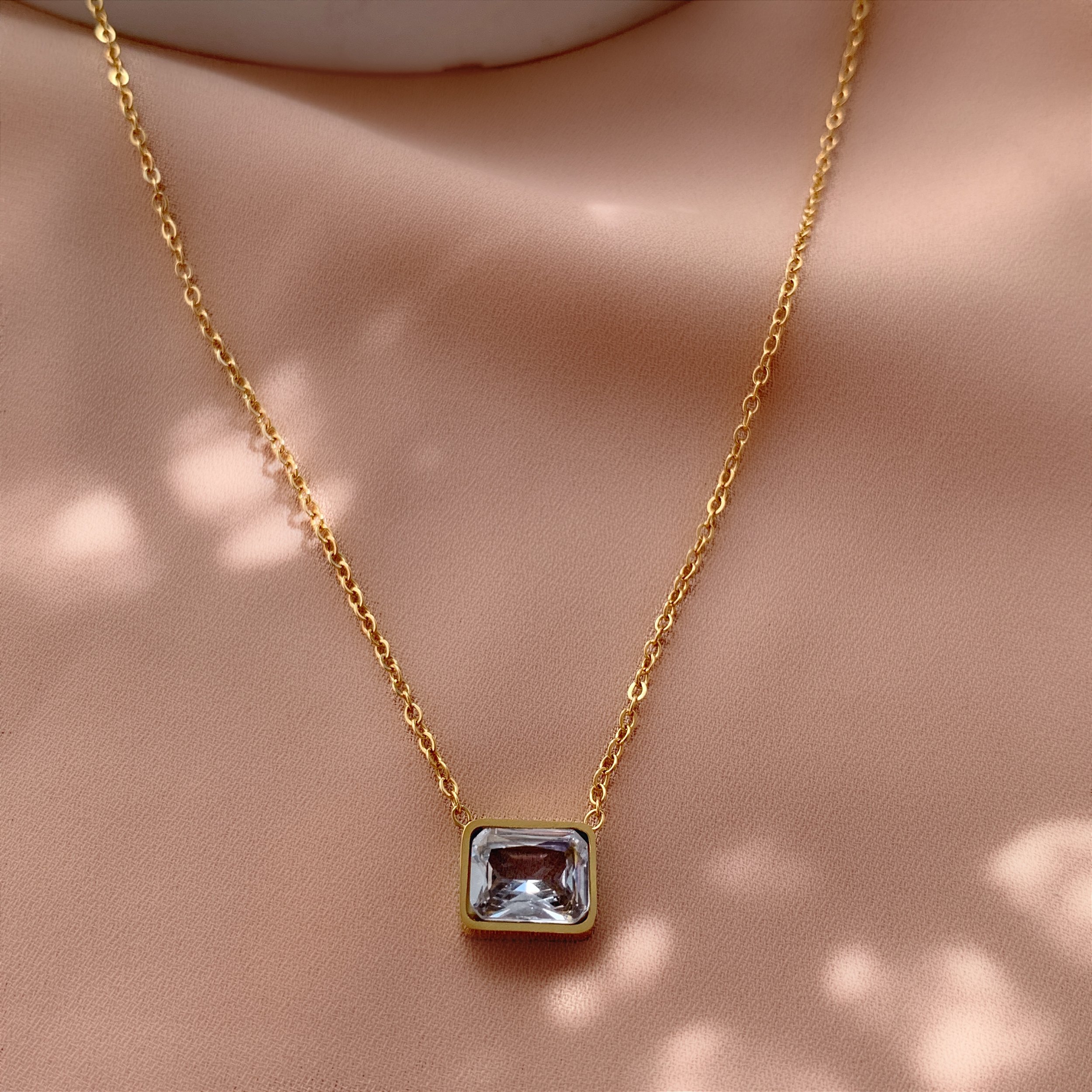 COLAR CORRENTE DELICADA PEDRA ZIRCÔNIA RETANGULAR DOURADO AÇO 316L⭐️