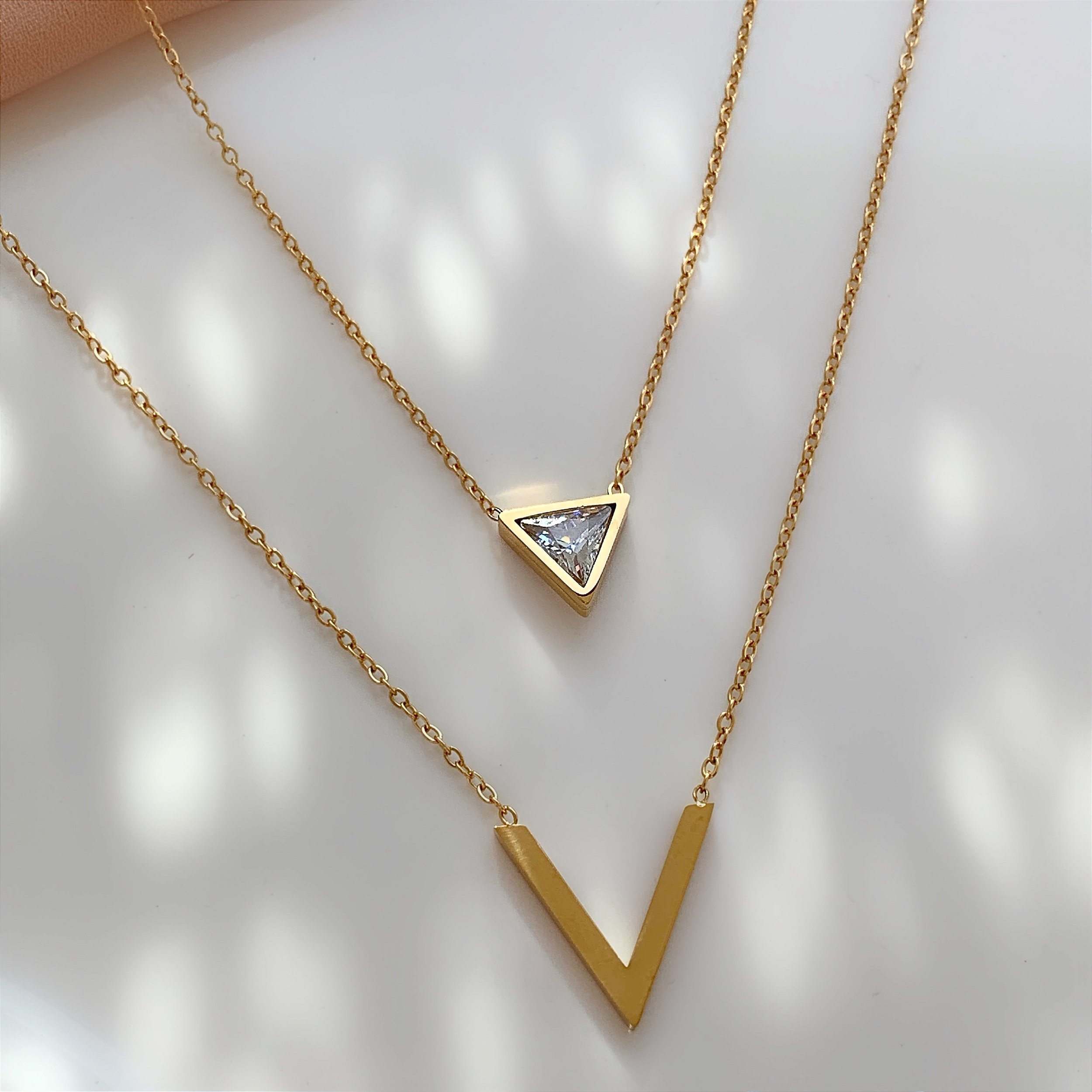 COLAR CORRENTE DUPLA TRIÂNGULO ZIRCÔNIA DOURADA AÇO 316L⭐️