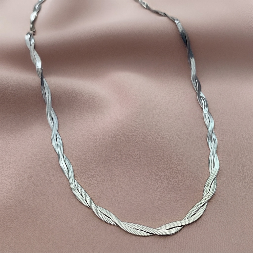 COLAR CORRENTE FITA FINA ENTRELAÇADA AÇO 316L⭐️