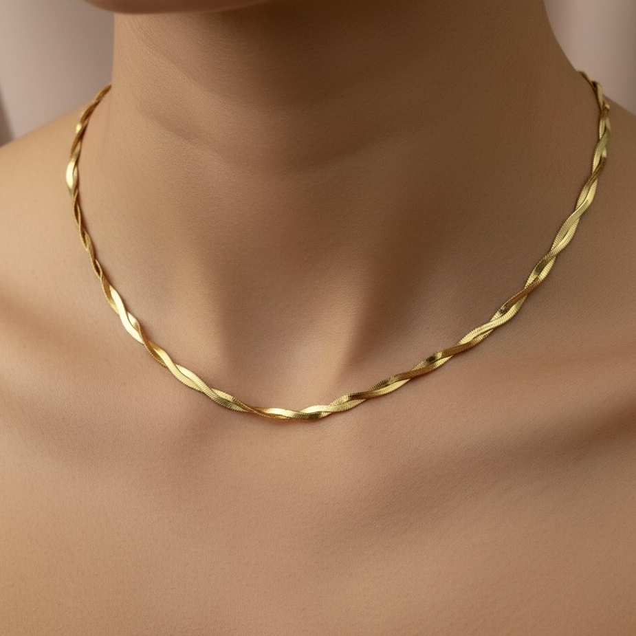 COLAR CORRENTE FITA FINA ENTRELAÇADA DOURADA AÇO 316L⭐️