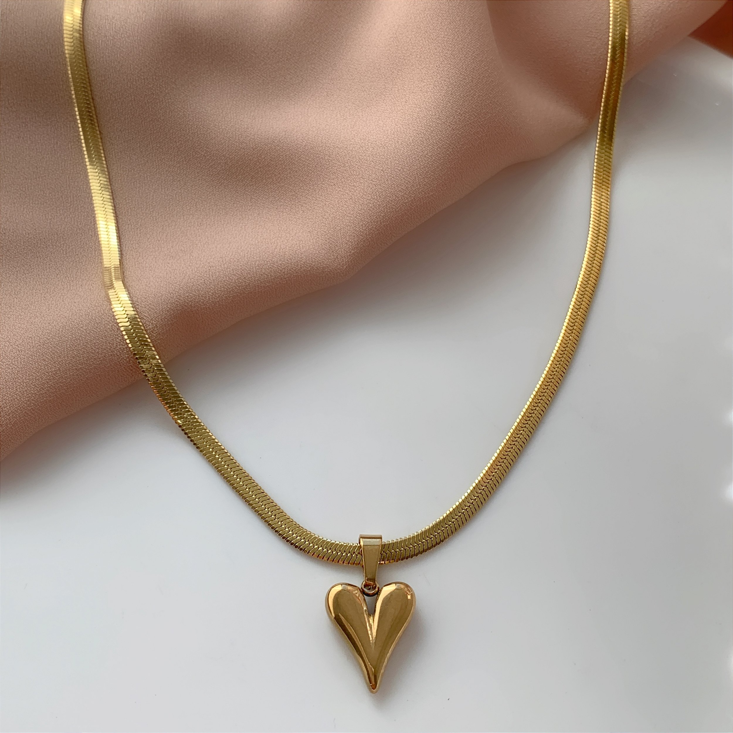 COLAR CORRENTE FITA PINGENTE CORAÇÃO ALONGADO DOURADO AÇO 316L⭐️