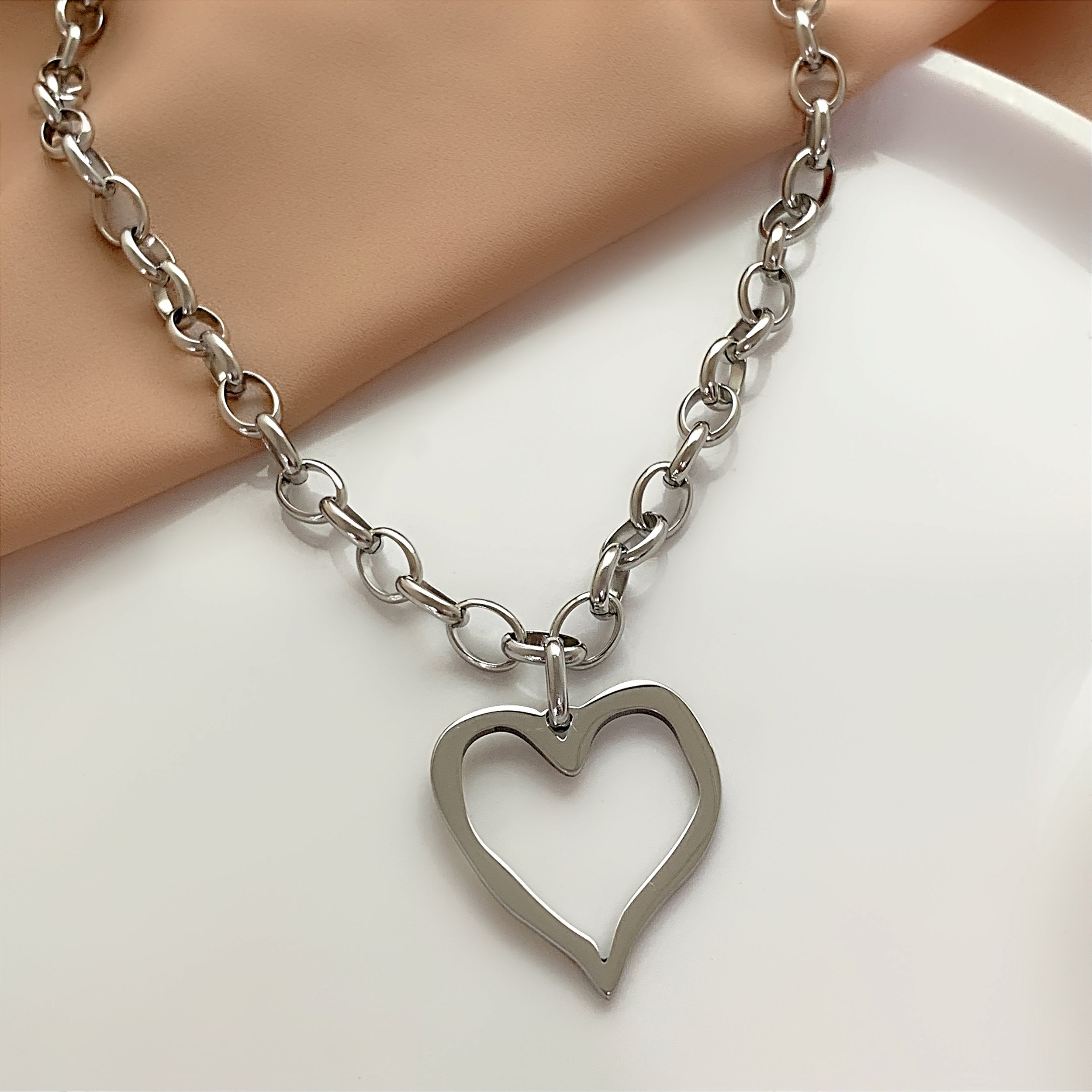 COLAR CORRENTE GROSSA CORAÇÃO ABSTRATO VAZADO AÇO 316L⭐️