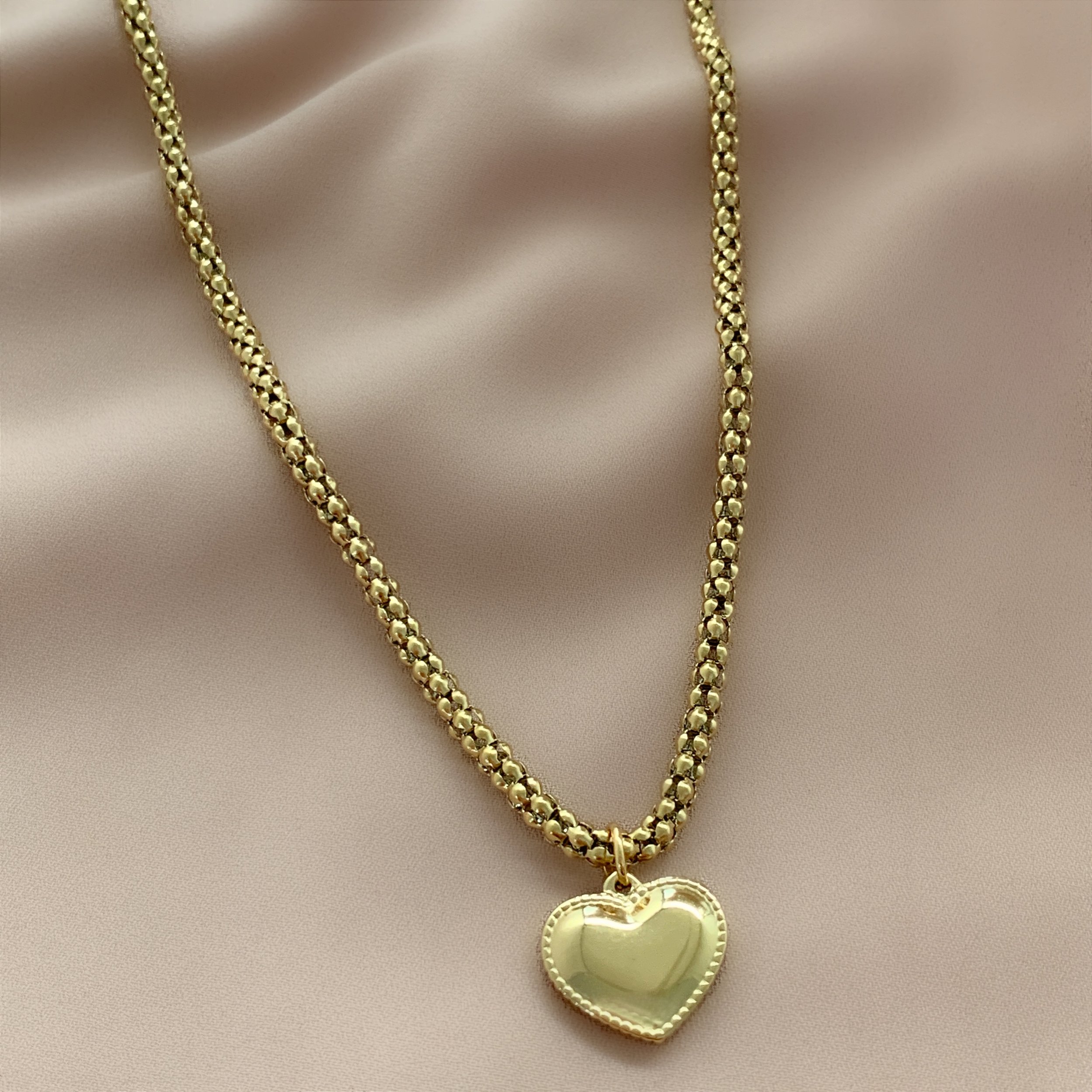 COLAR CORRENTE GROSSA PINGENTE CORAÇÃO DOURADO AÇO 316L⭐️