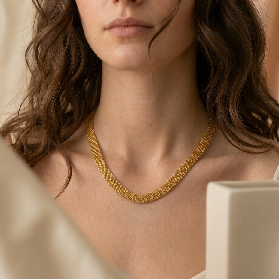 COLAR CORRENTE MALHA 7MM COM 60CM SEM EXTENSOR DOURADO AÇO 316L⭐️
