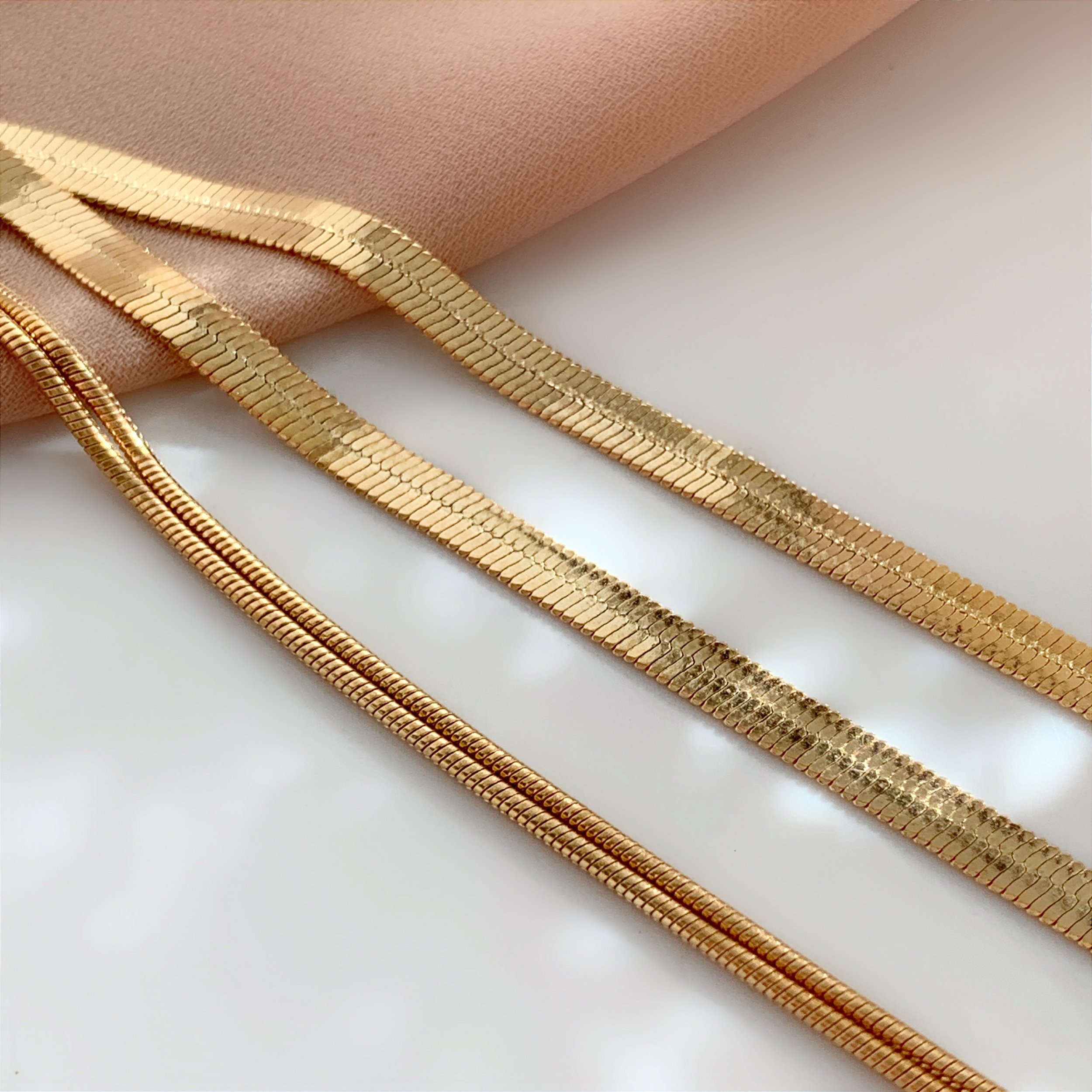 COLAR CORRENTE QUÁDRUPLA FITAS E RABO DE RATO BIJU