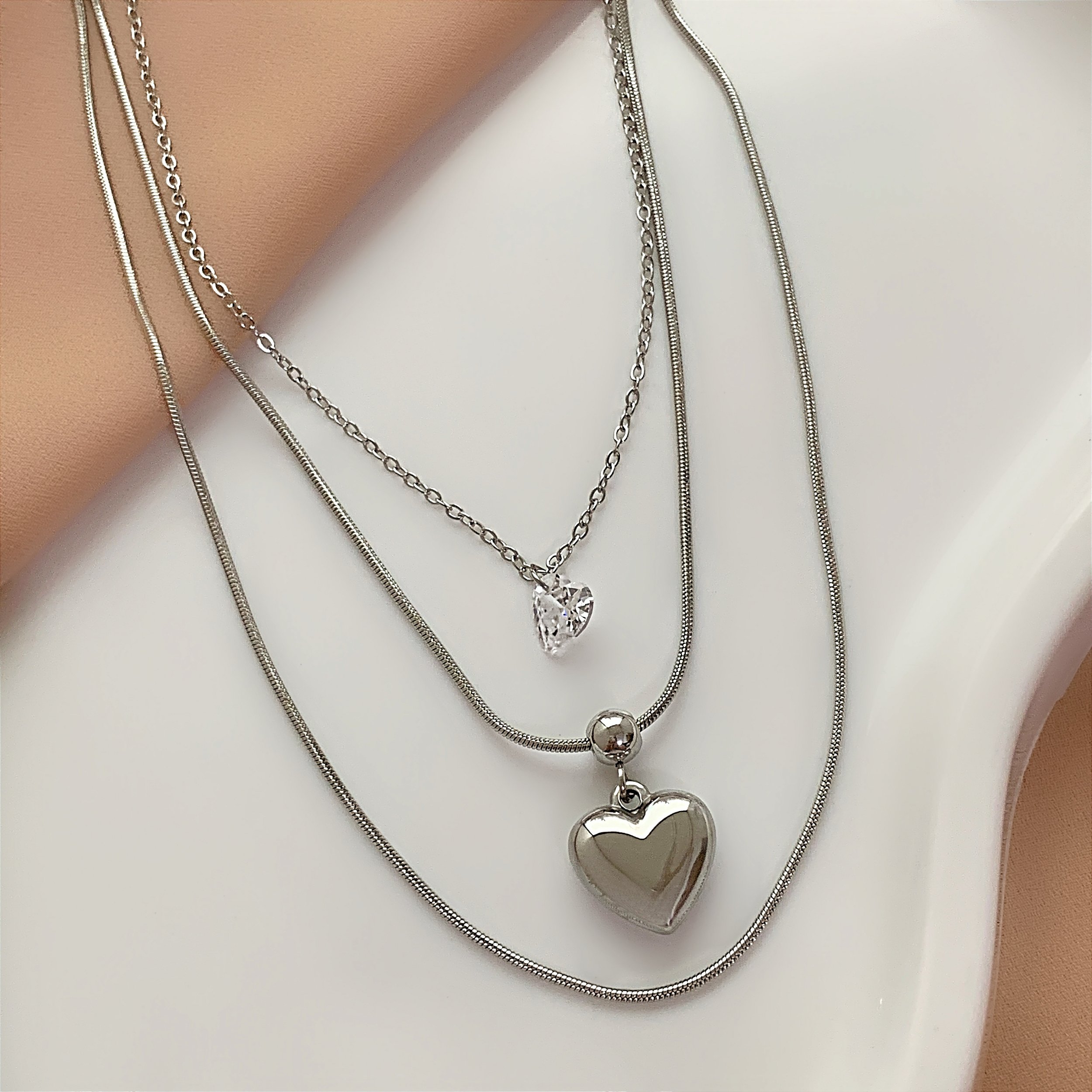 COLAR CORRENTE TRIPLA DELICADA CORAÇÃO E ZIRCÔNIA AÇO 316L⭐️