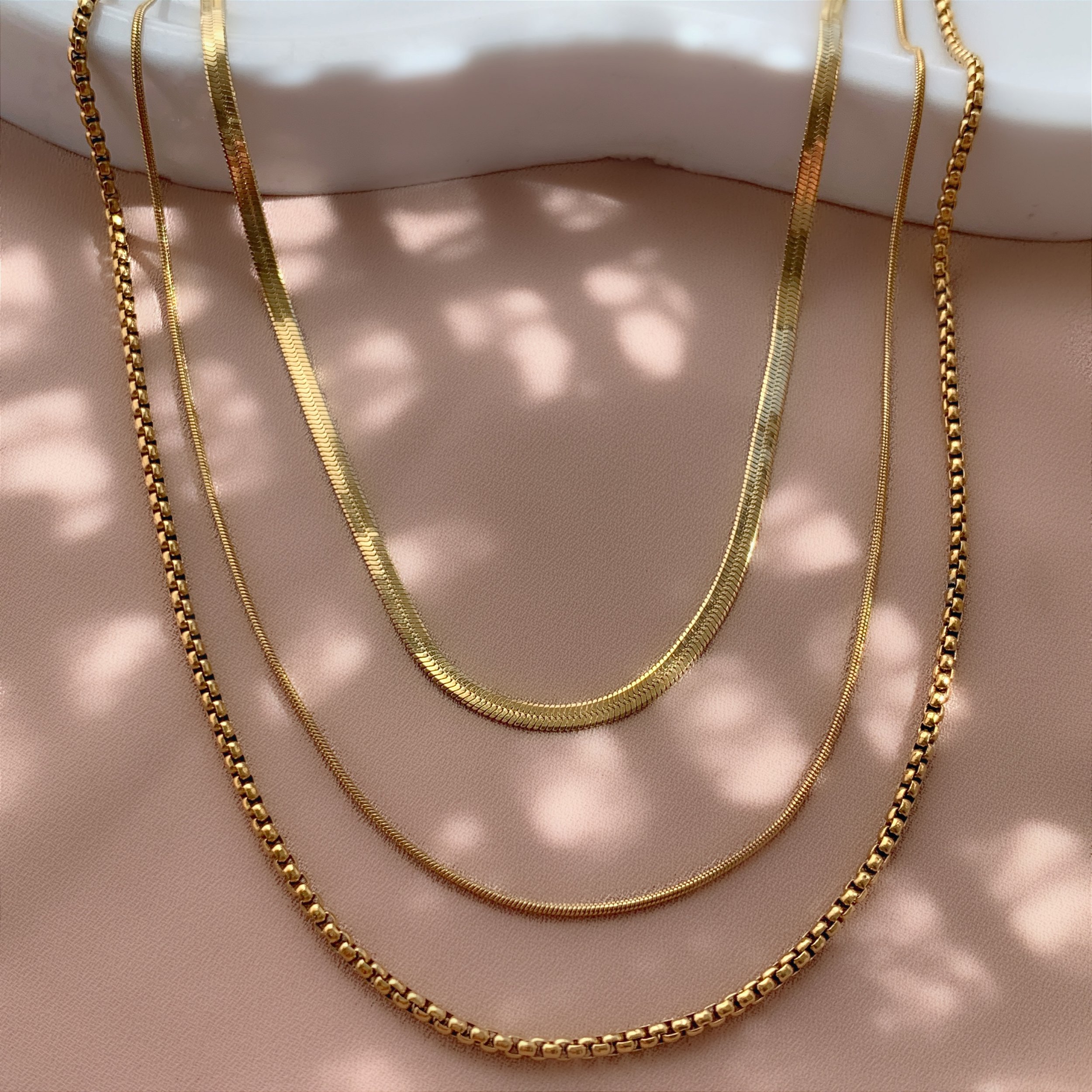COLAR CORRENTE TRIPLAFITA FINA, RABO DE RATO E VENEZIANA DOURADO AÇO 316L⭐️