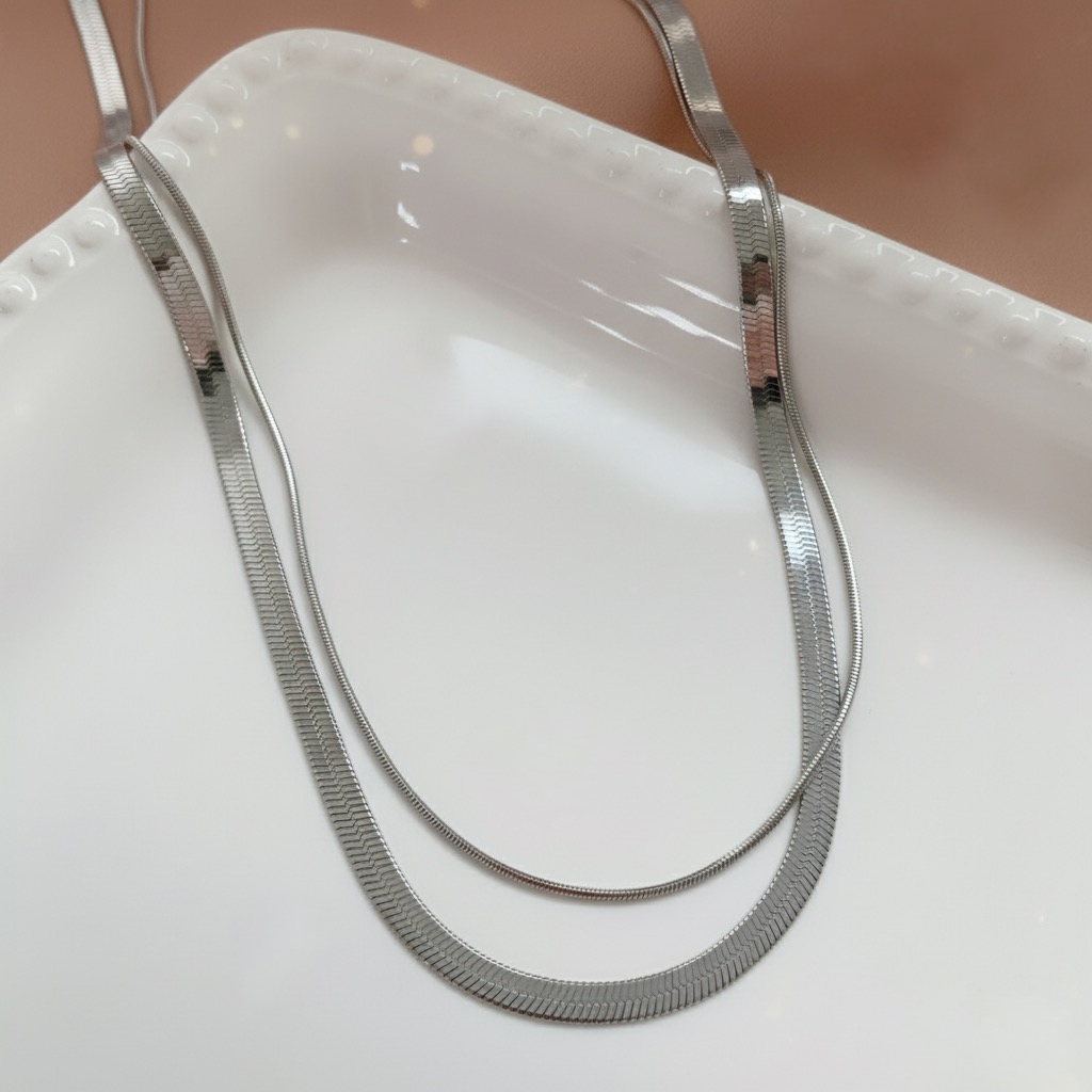 COLAR DUPLO FITA FINA E RABO DE RATO FINO AÇO 316L⭐️