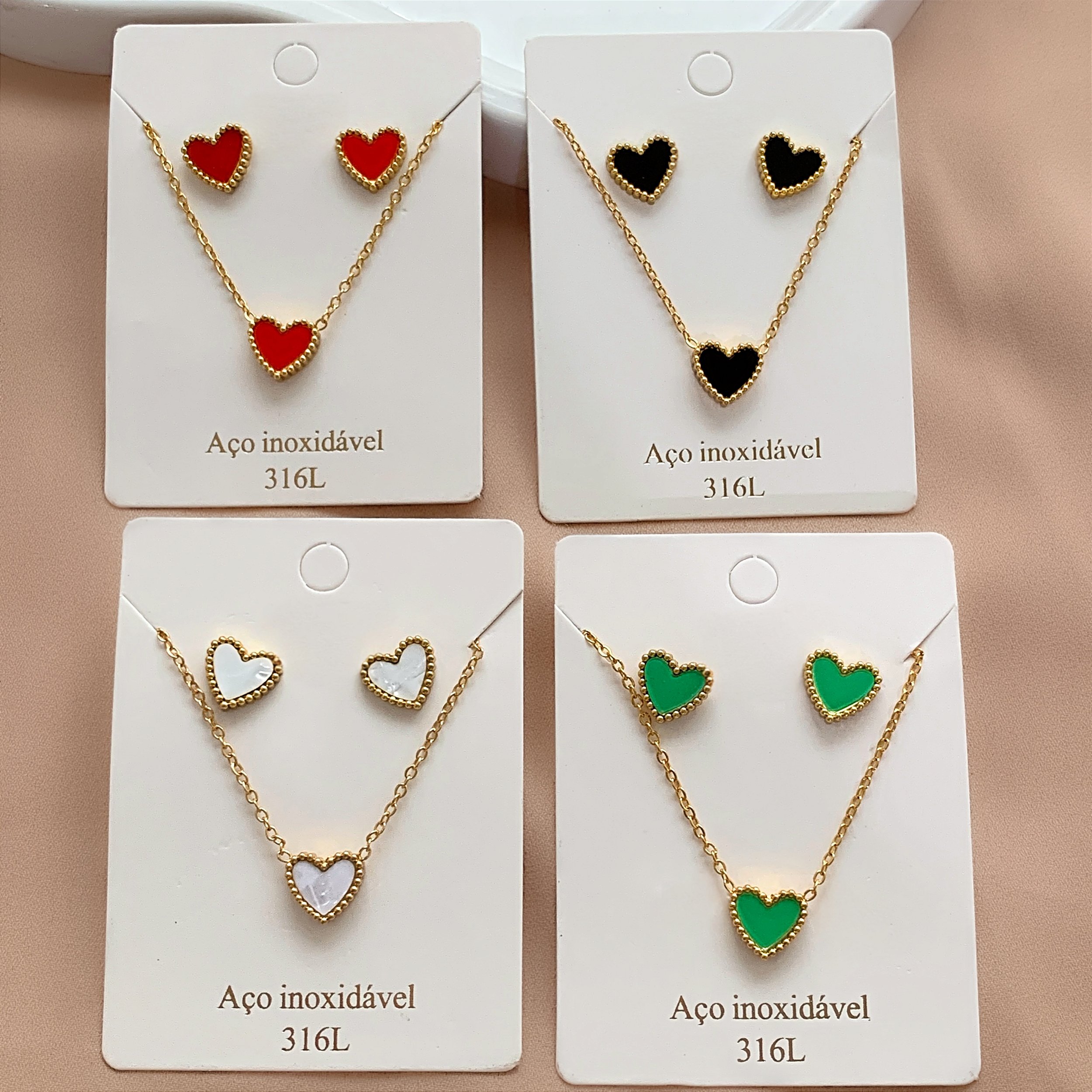 Kit composto por: 1 colar medindo 39cm +5cm de extensor e um par de brincos de tarraxa.