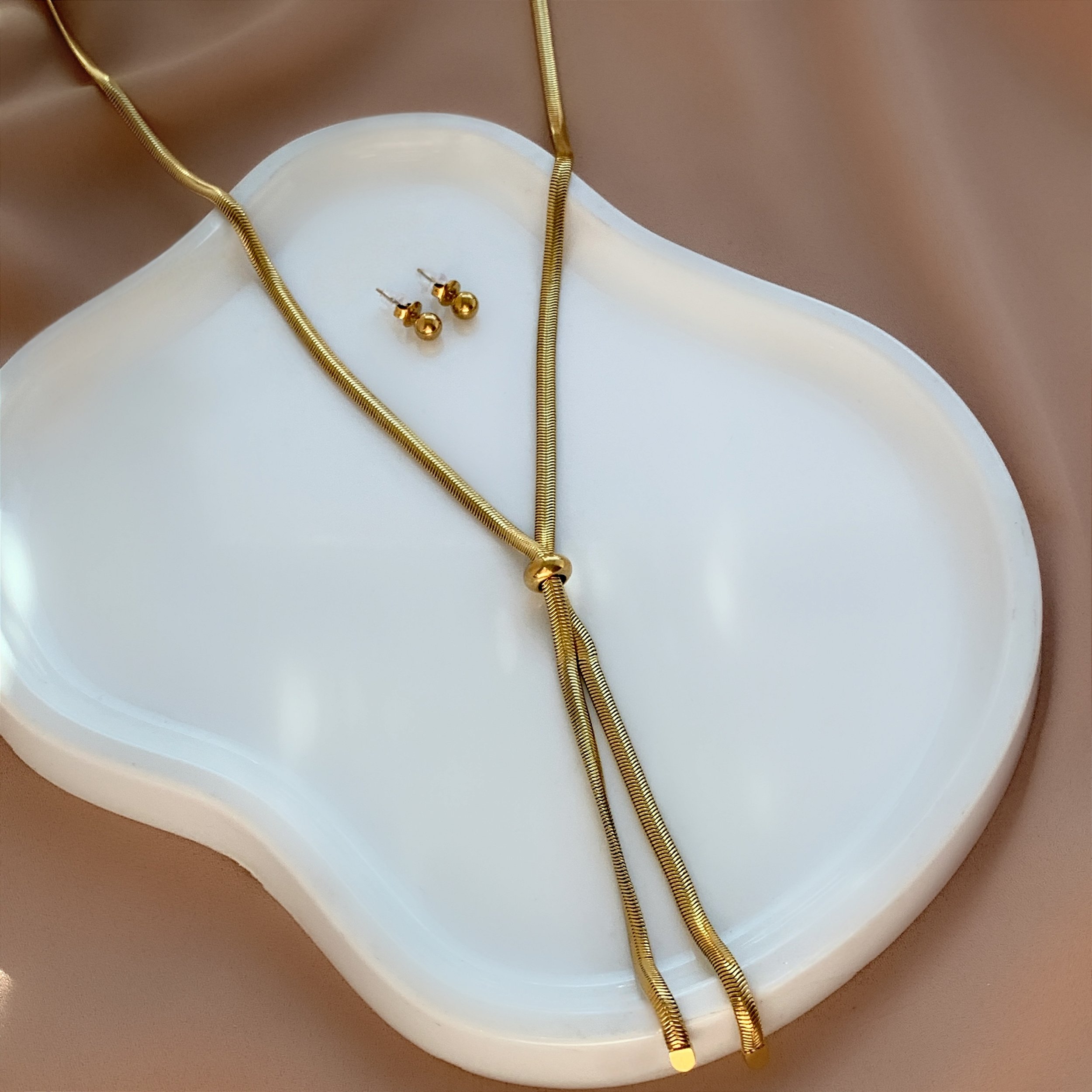 COLAR E BRINCO KIT CORRENTE COBRA GRAVATINHA DOURADO AÇO 316L PREMIUM⭐️