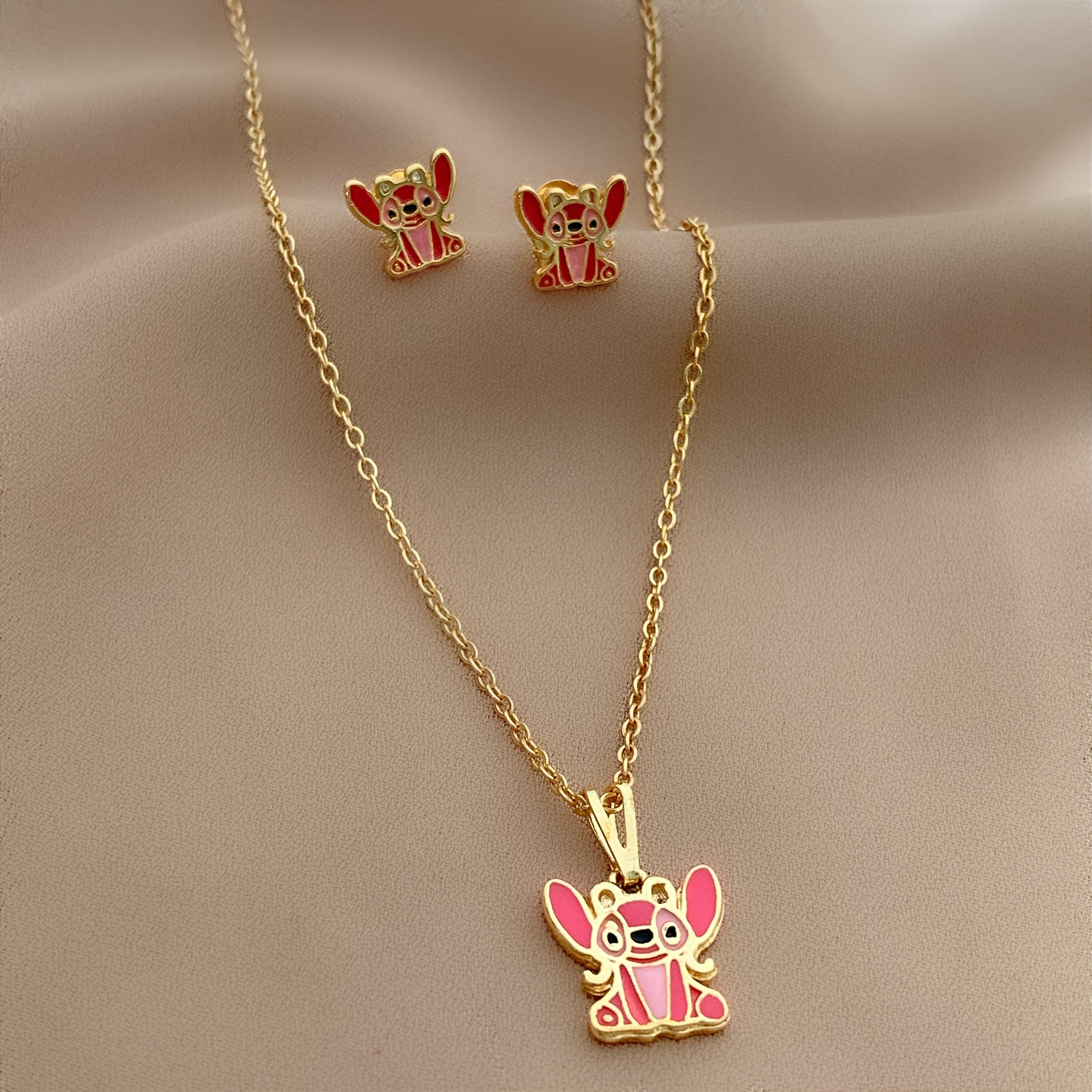 COLAR E BRINCO KIT INFANTIL ANGEL FOLHEADO A OURO 18K⭐