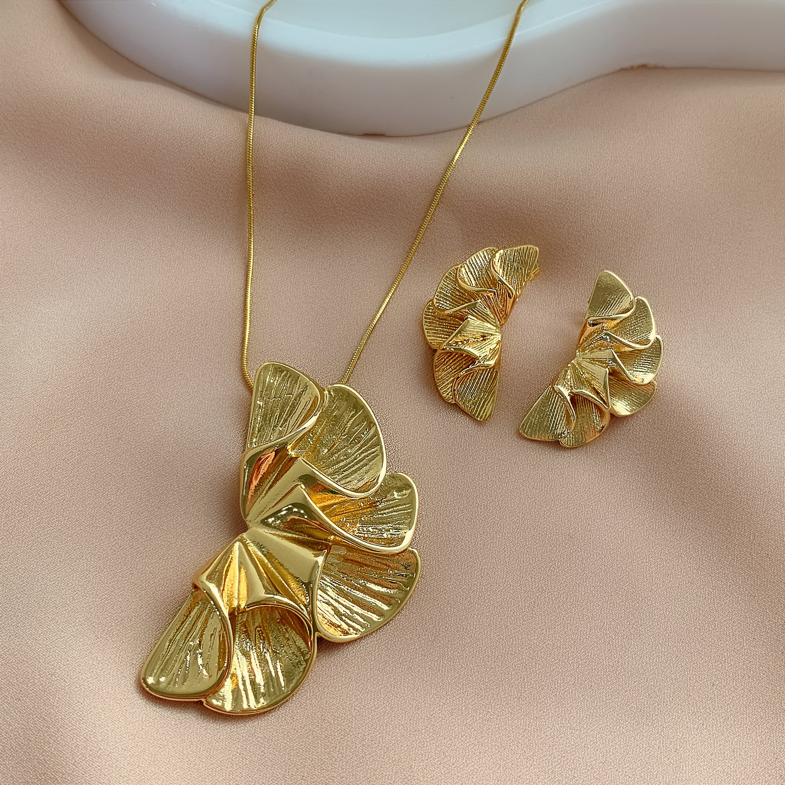 COLAR E BRINCO KIT MEIA FLOR DOURADO AÇO 316L PREMIUM⭐️