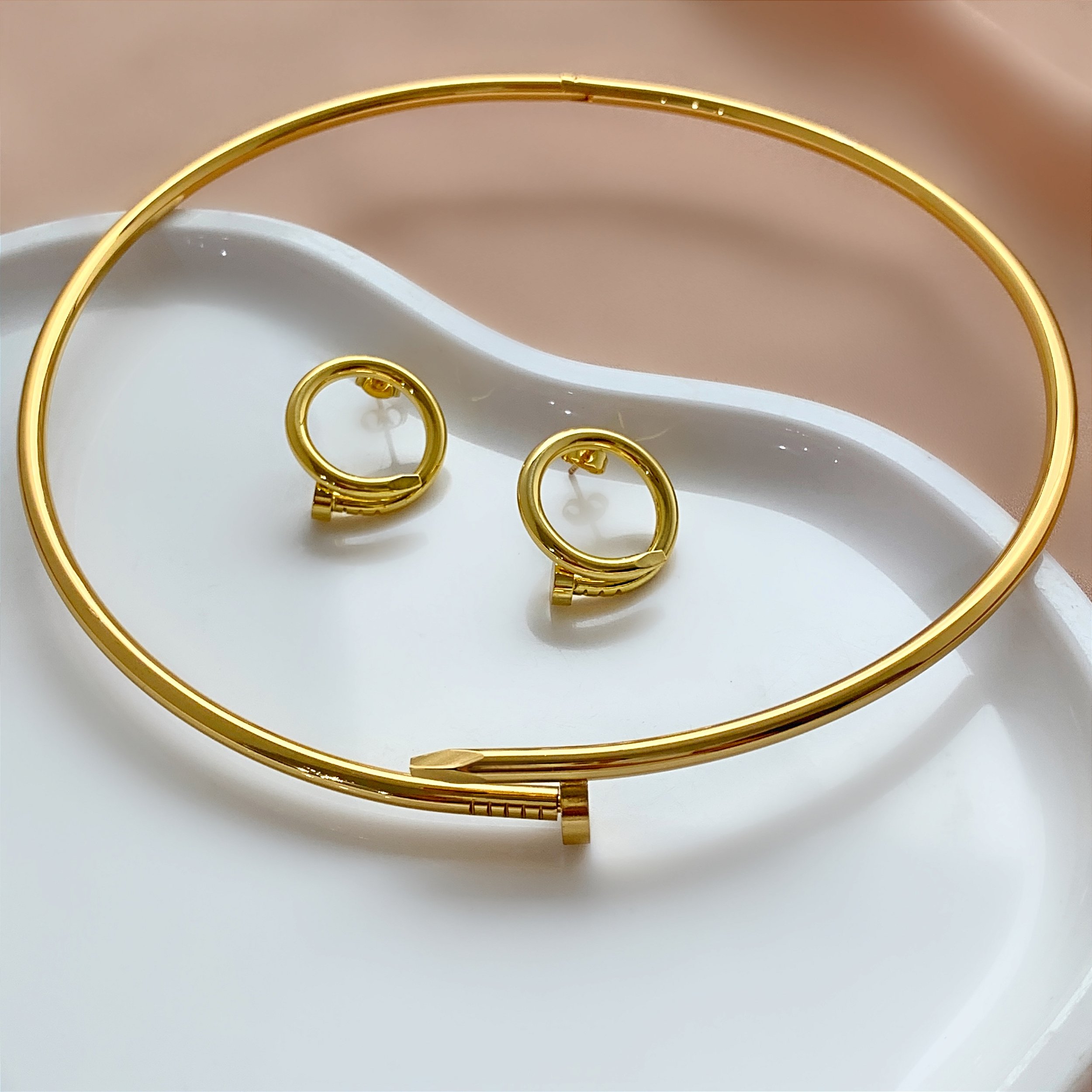 Kit composto por: 1 colar medindo 13,7cm e um par de brincos de tarraxa.