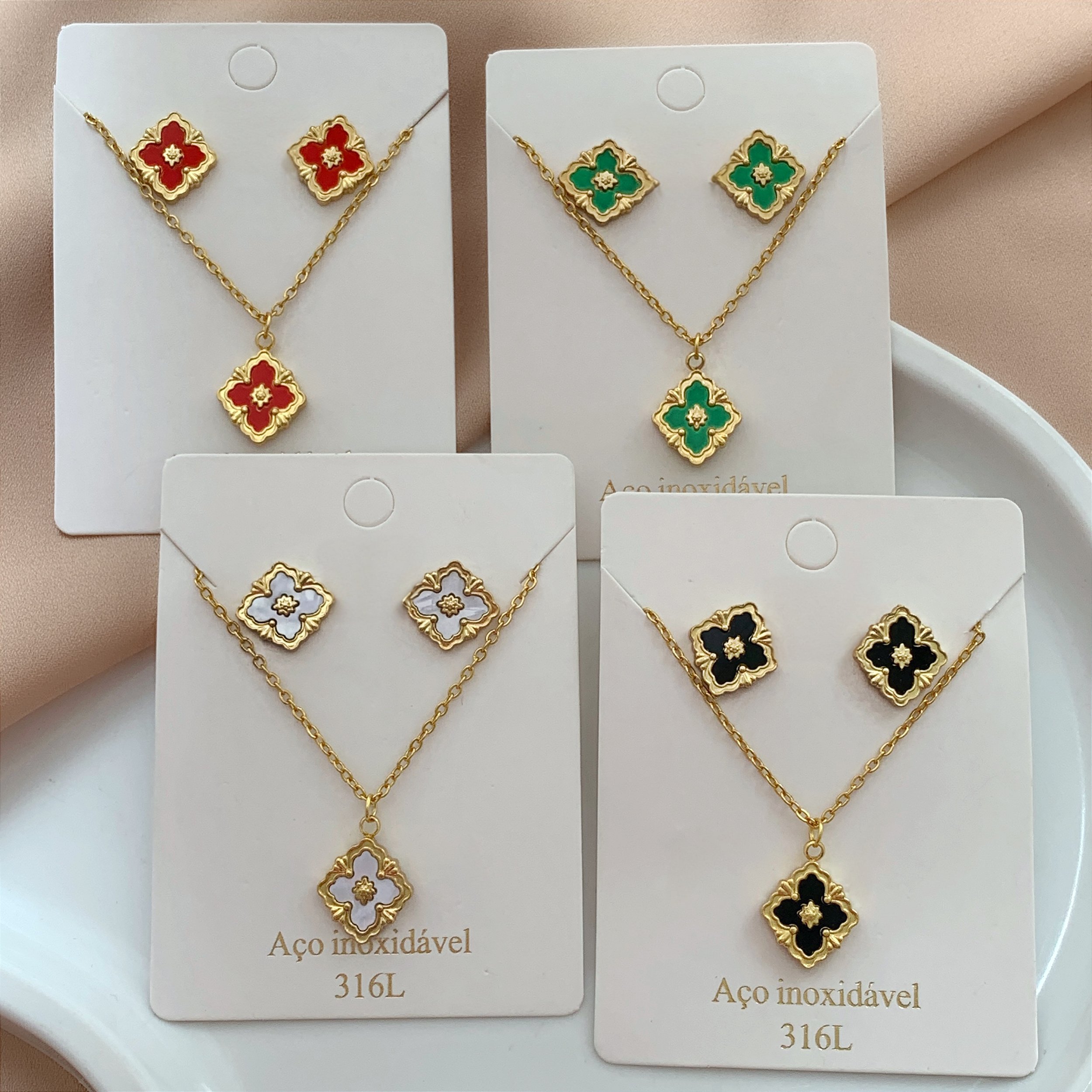 Kit composto por: 1 colar medindo 39cm +5cm de extensor e um par de brincos de tarraxa.