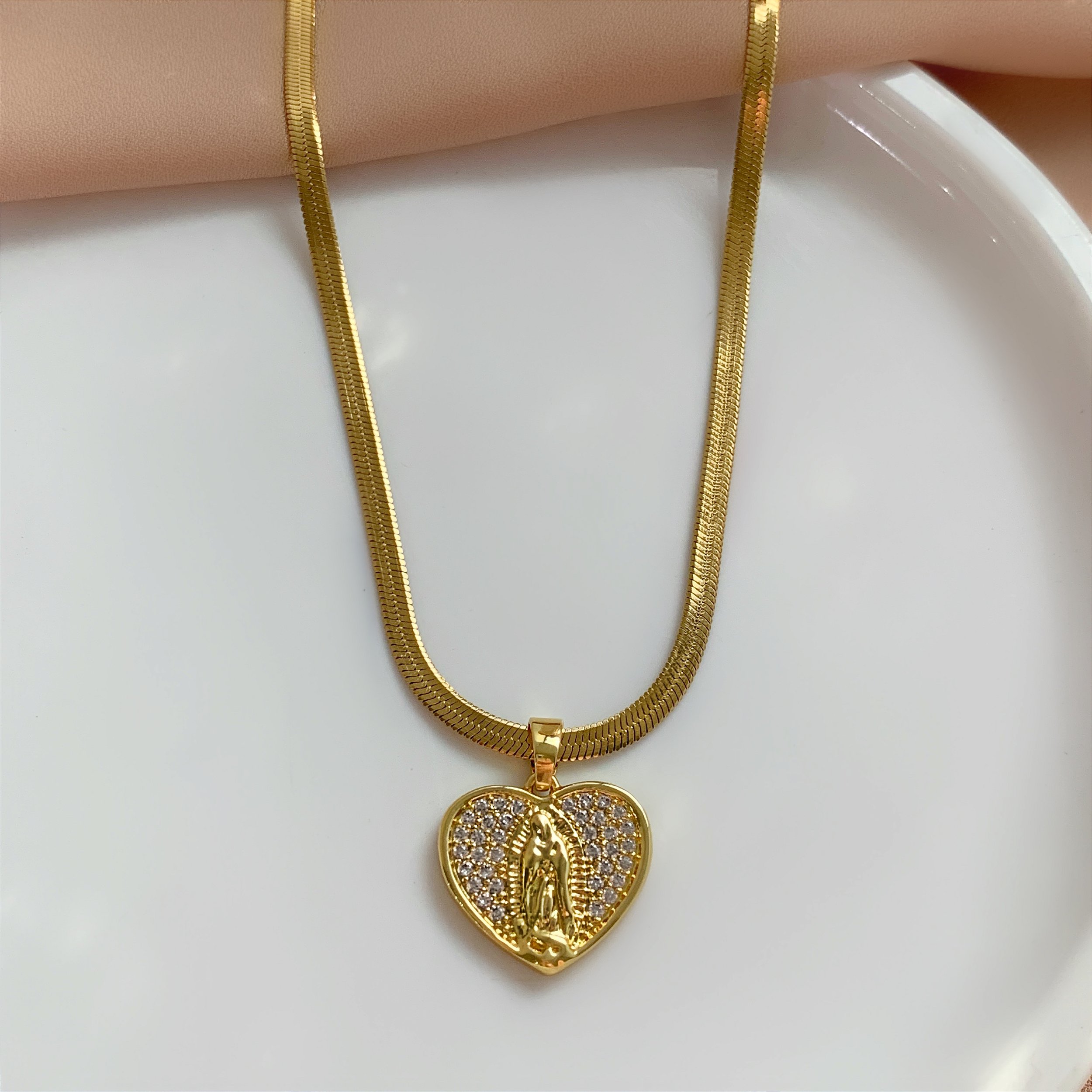 COLAR FITA FINA COM PINGENTE NOSSA SENHORA CRAVEJADO DOURADO AÇO 316L⭐️