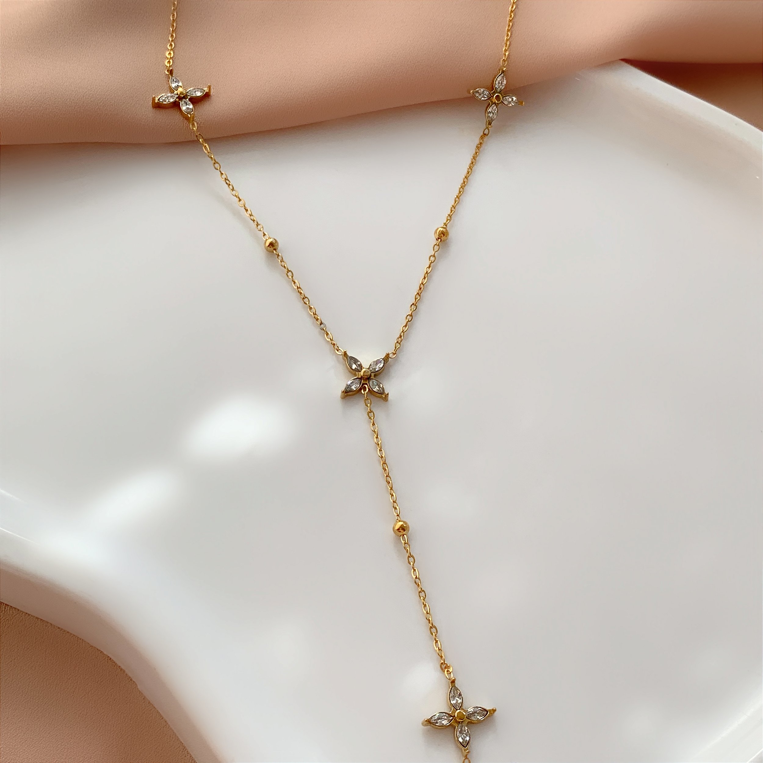 COLAR GRAVATINHA TREVOS ZIRCÔNIAS CRISTAIS DOURADO AÇO 316L⭐️