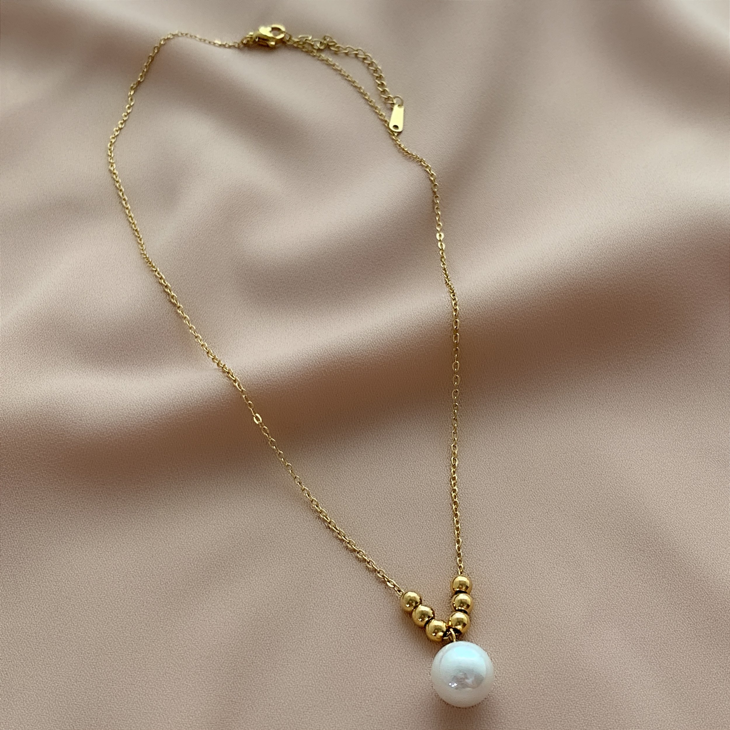 COLAR PÉROLA E BOLINHAS DOURADO AÇO 316L PREMIUM⭐️