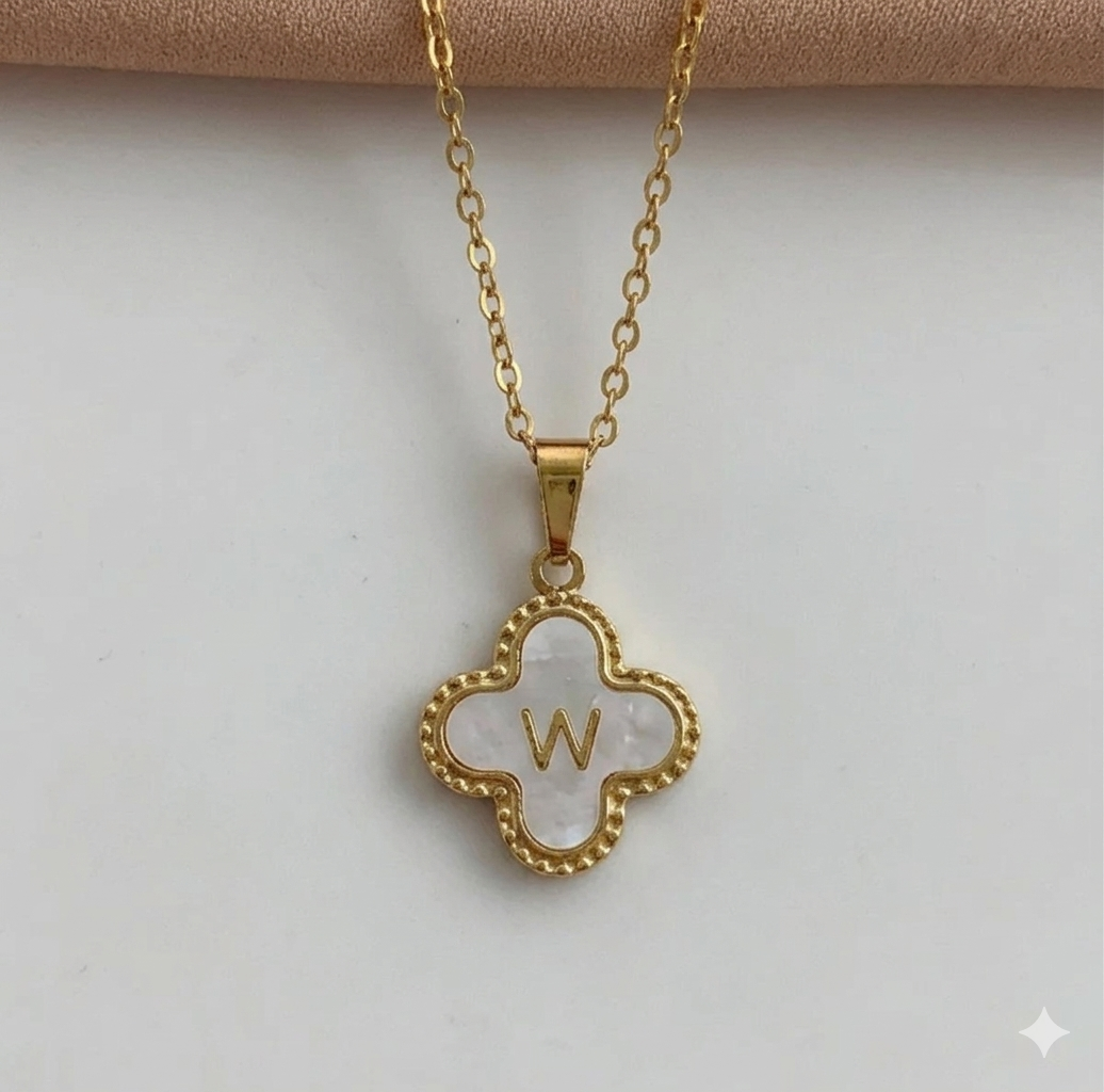 COLAR TREVO RESINADO COM LETRA P-W DOURADO AÇO 316L⭐️