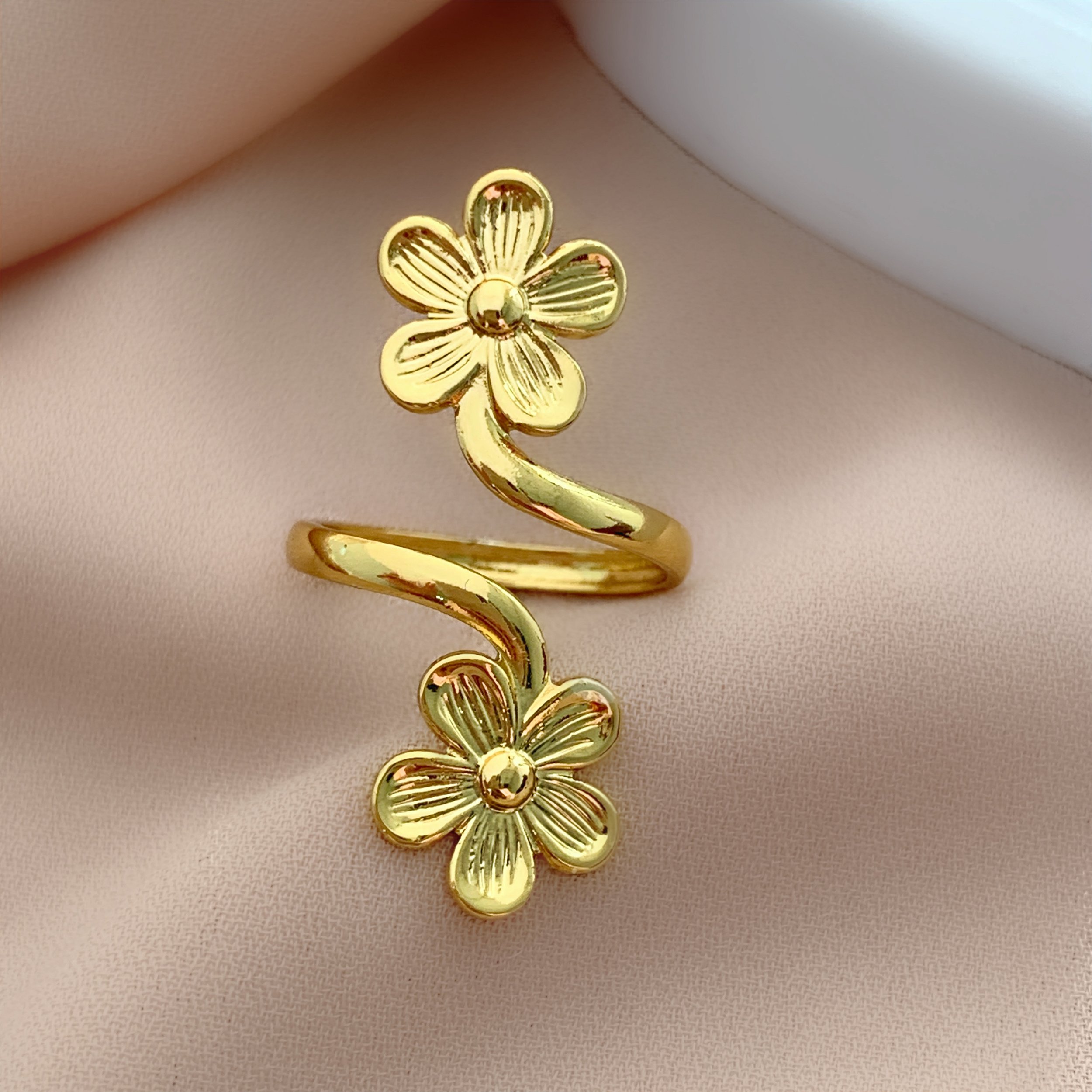 ANEL REGULÁVEL FLOR DUPLA DOURADO AÇO 316L⭐️