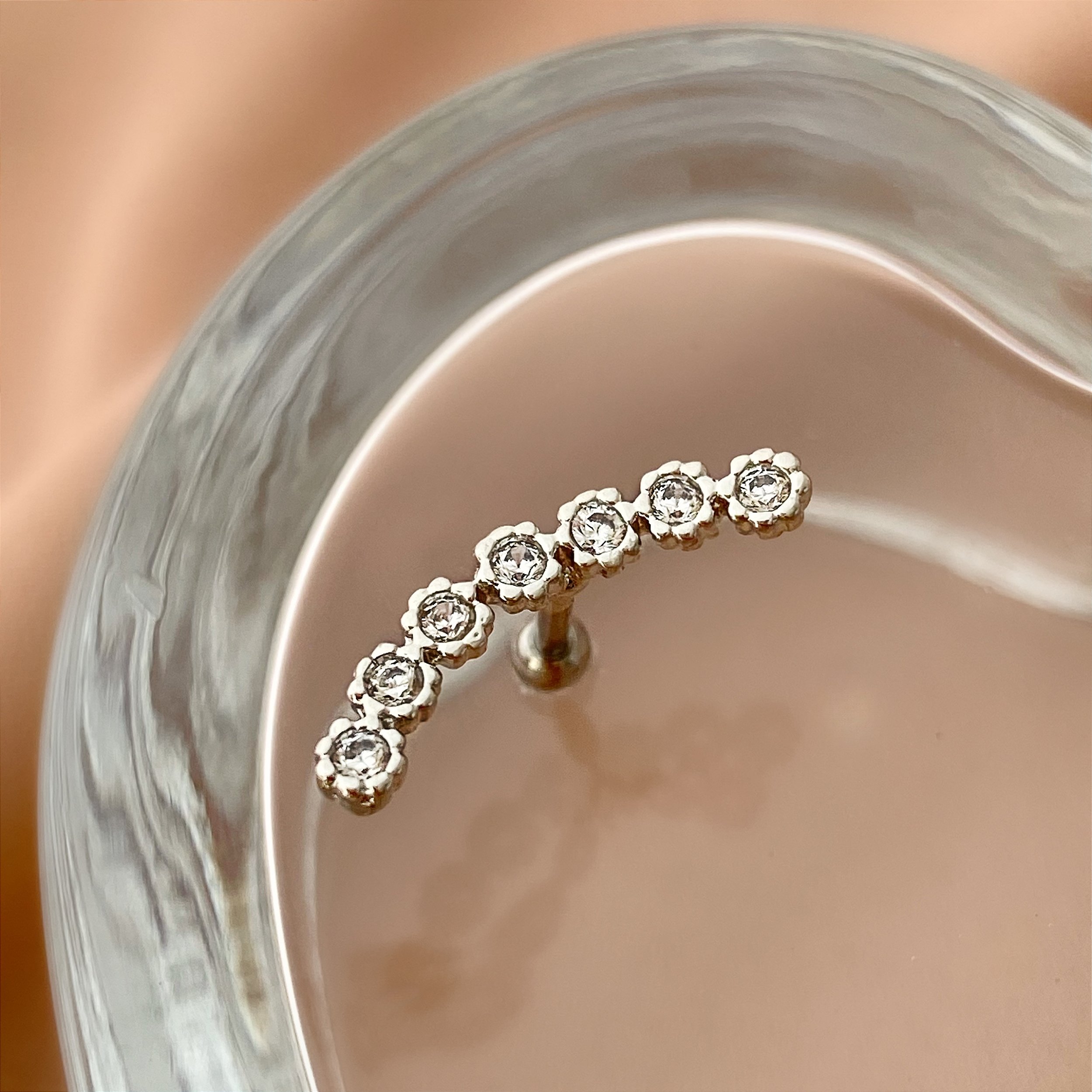 PIERCING CARTILAGEM AÇO 316L MINI FLORES ZIRCÔNIAS 7MM FOLHEADO A PRATA SEMIJOIA PARA ATUALIZAÇÃO⭐️