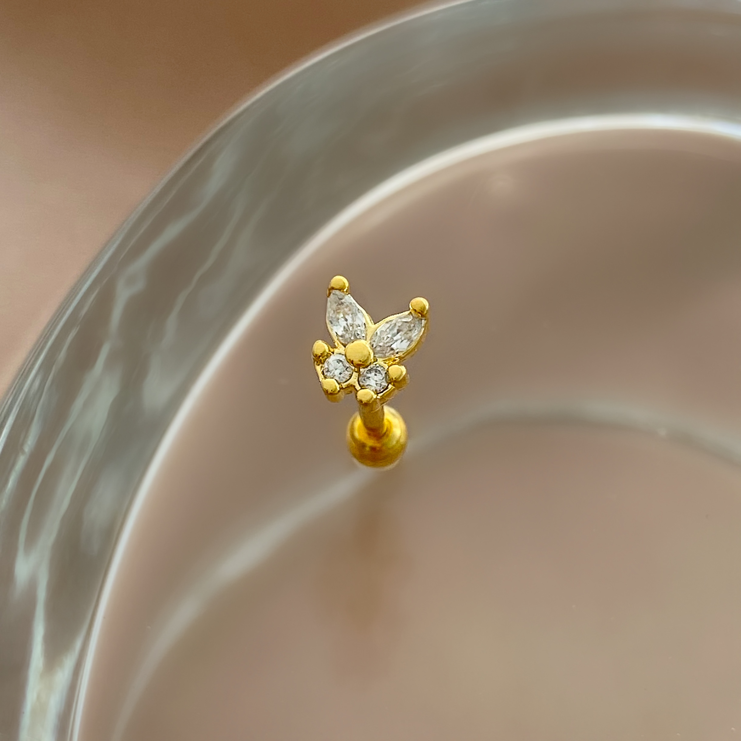 PIERCING CARTILAGEM BORBOLETA ZIRCÔNIAS 6MM HASTE AÇO 316L FOLHEADO A OURO 18K SEMIJOIA PARA ATUALIZAÇÃO⭐️