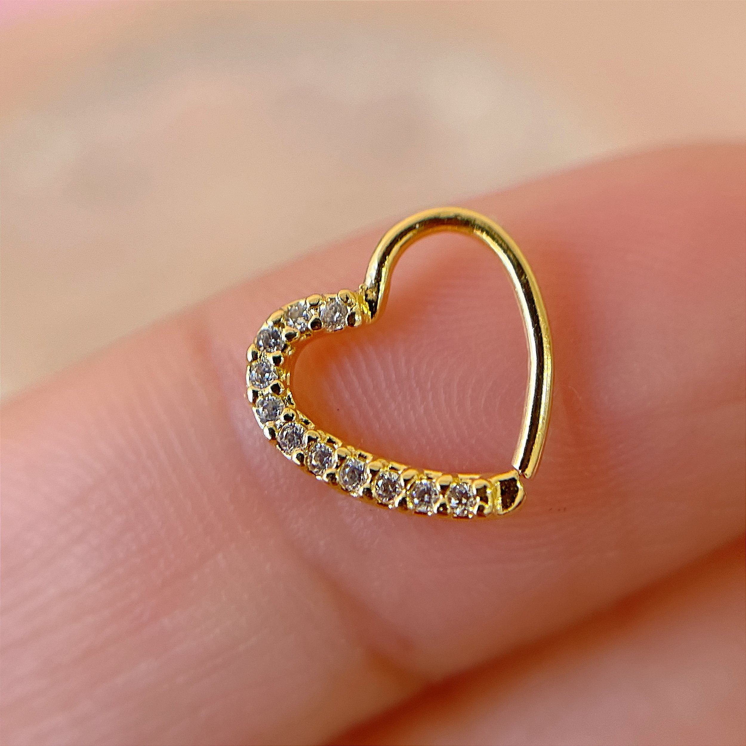 PIERCING CARTILAGEM/ DAITH CORAÇÃO METADE ZIRCÔNIA 8MM FOLHEADO A OURO 18K SEMIJOIA PARA ATUALIZAÇÃO ⭐️